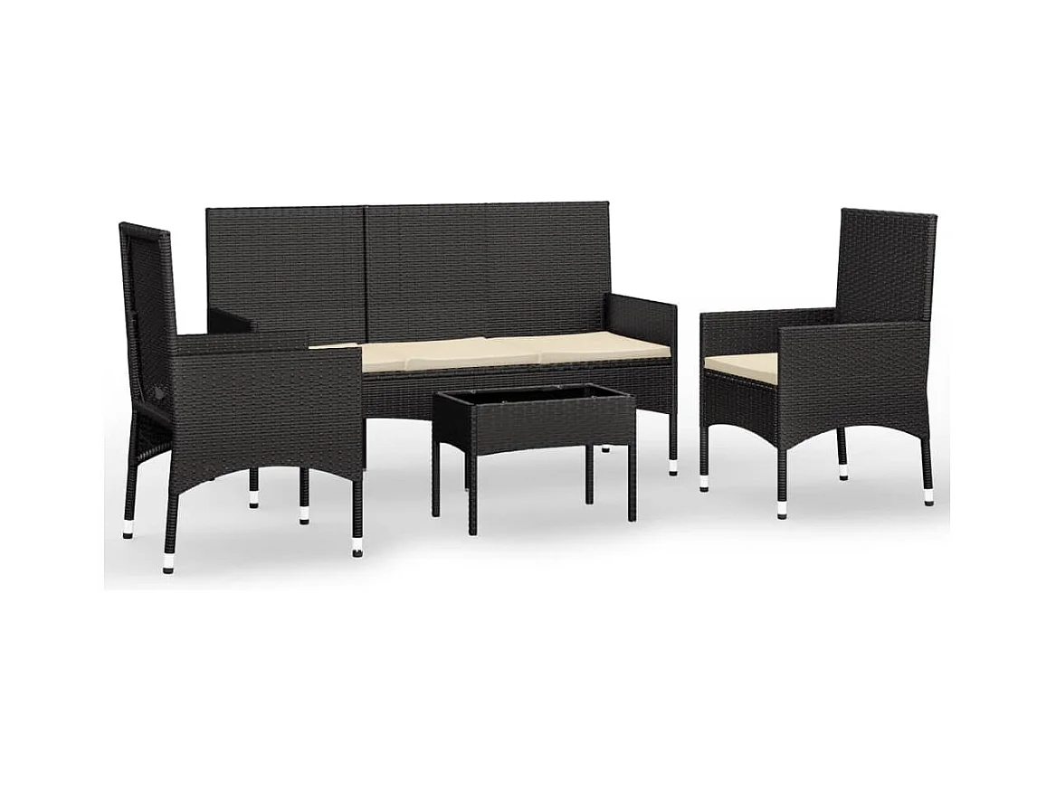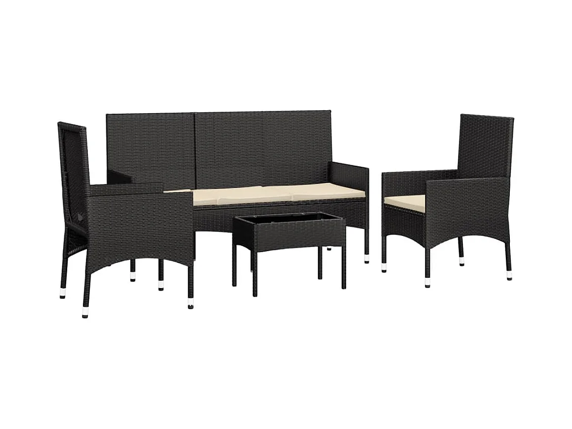 Salon de jardin 4 pcs Résine tressée Noir BE66857