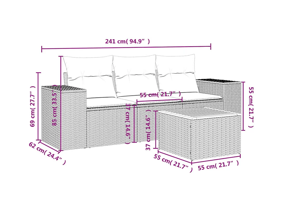 Salon de jardin 4 pcs avec coussins noir résine tressée BE99431