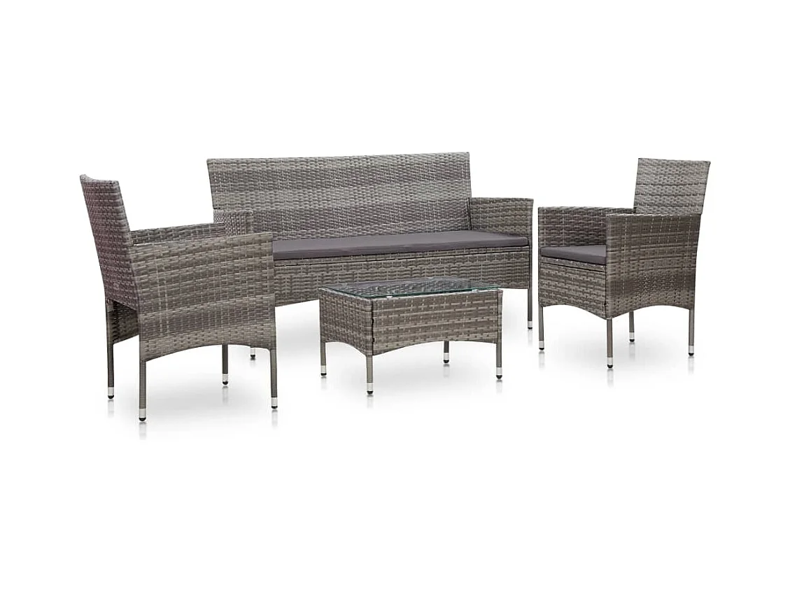 Salon de jardin 4 pcs avec coussins Gris Résine tressée BE99238