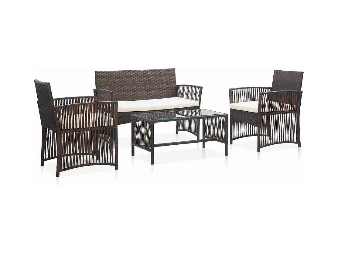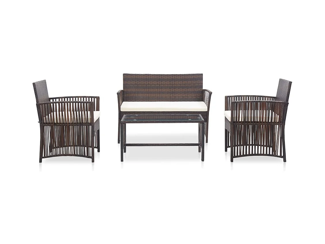 Salon de jardin 4 pcs avec coussins Marron Résine tressée BE68219