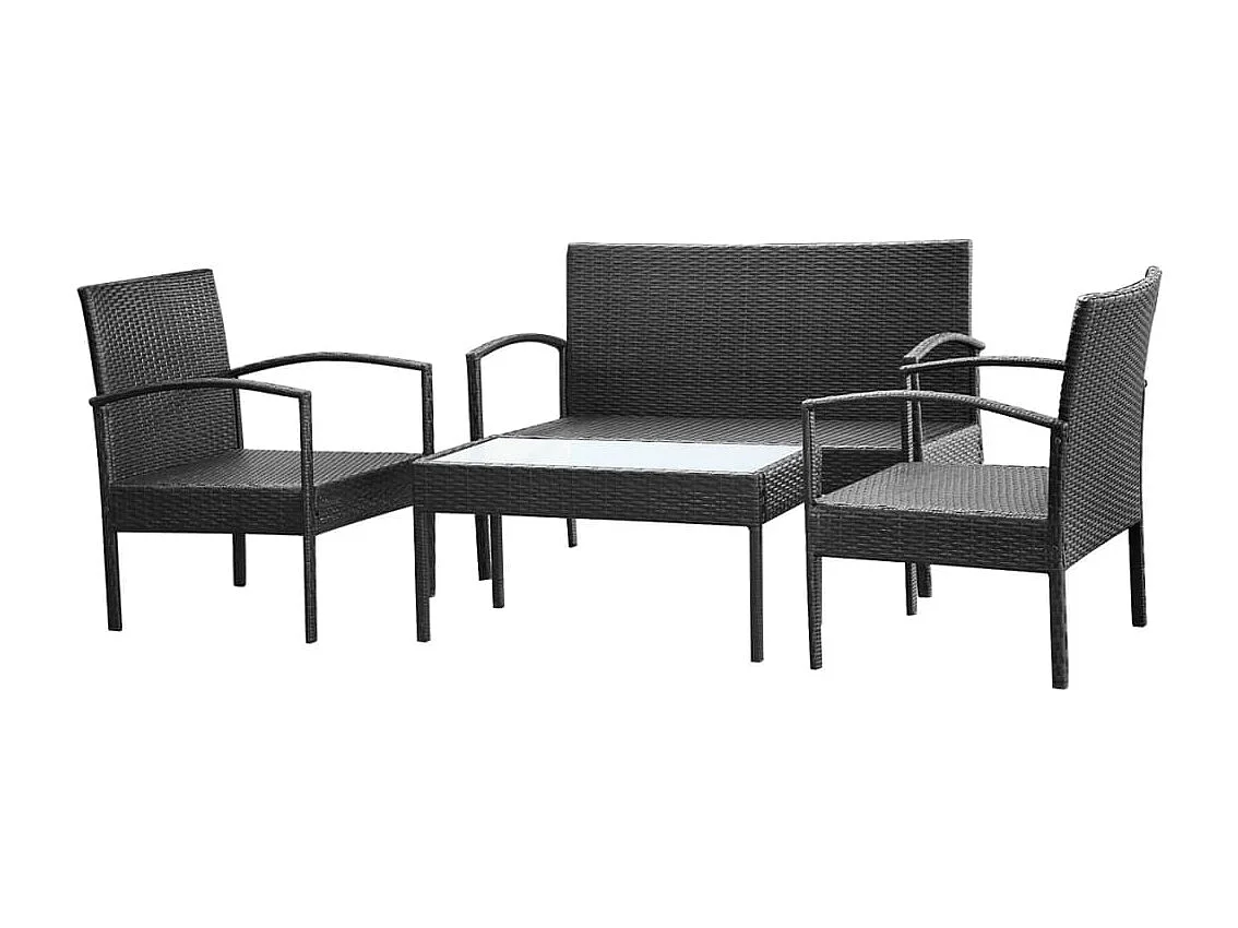 Salon de jardin 4 pcs avec coussins Résine tressée Noir
