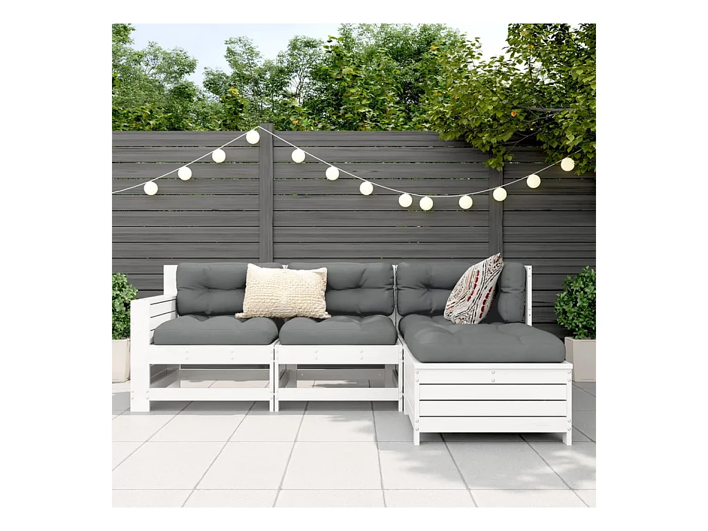 Salon de jardin 4 pcs blanc bois de pin massif FR23215
