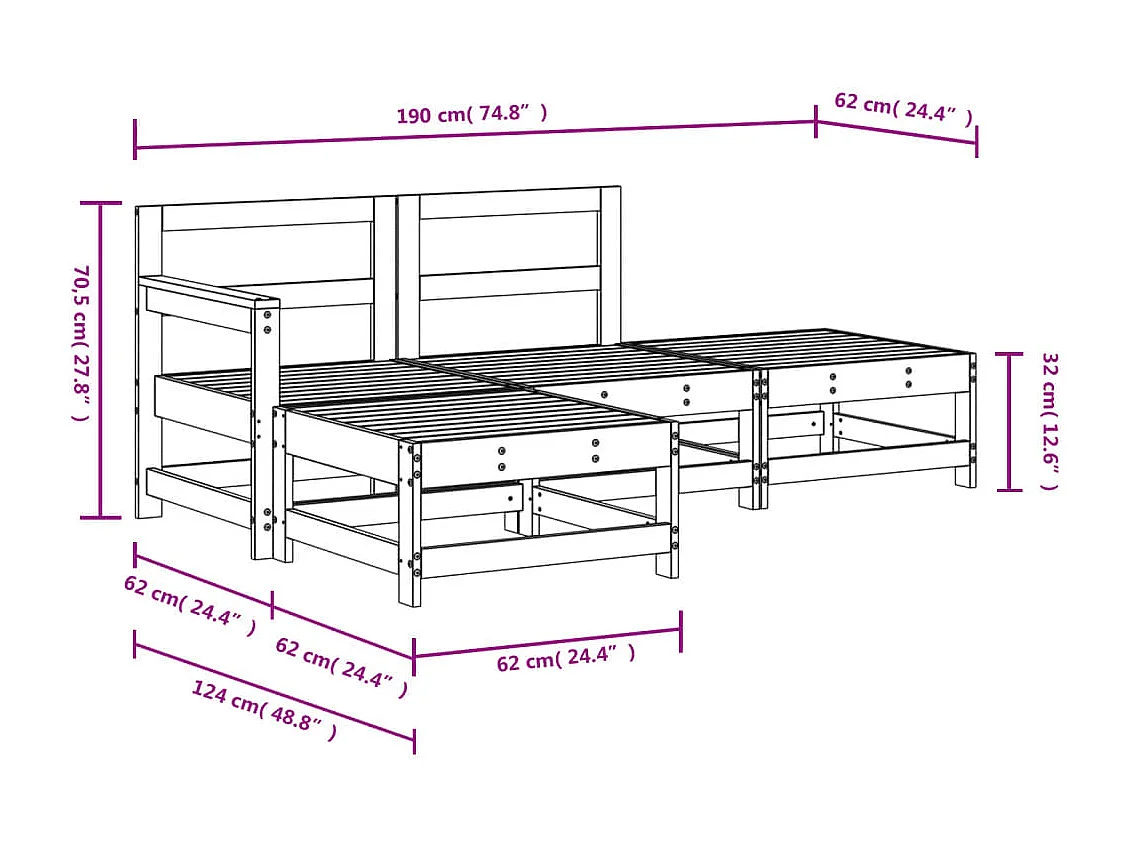 Salon de jardin 4 pcs bois massif douglas