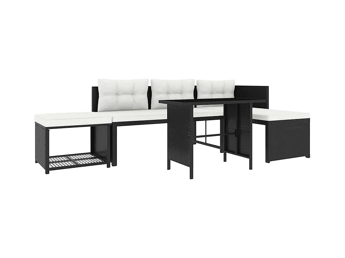 Salon de jardin 5 pcs avec coussins Résine tressée Noir