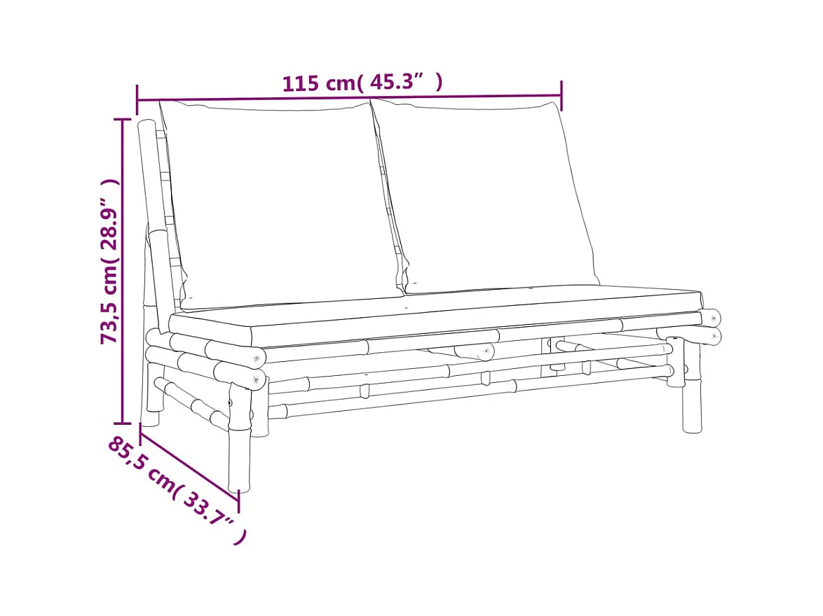 Salon de jardin 4 pièces avec coussins gris foncé bambou