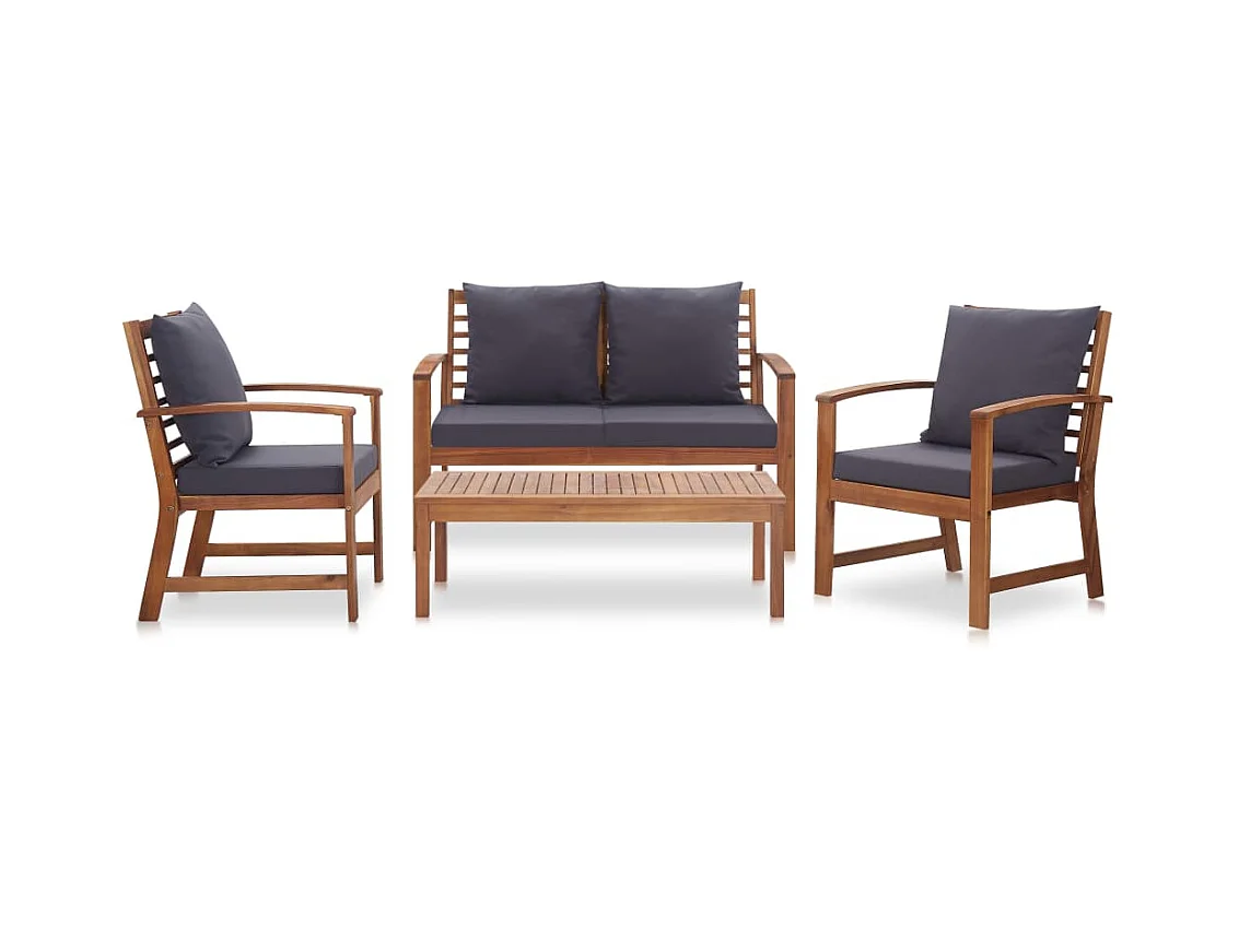 Salon de jardin 4 pièces avec coussin Bois d'acacia solide