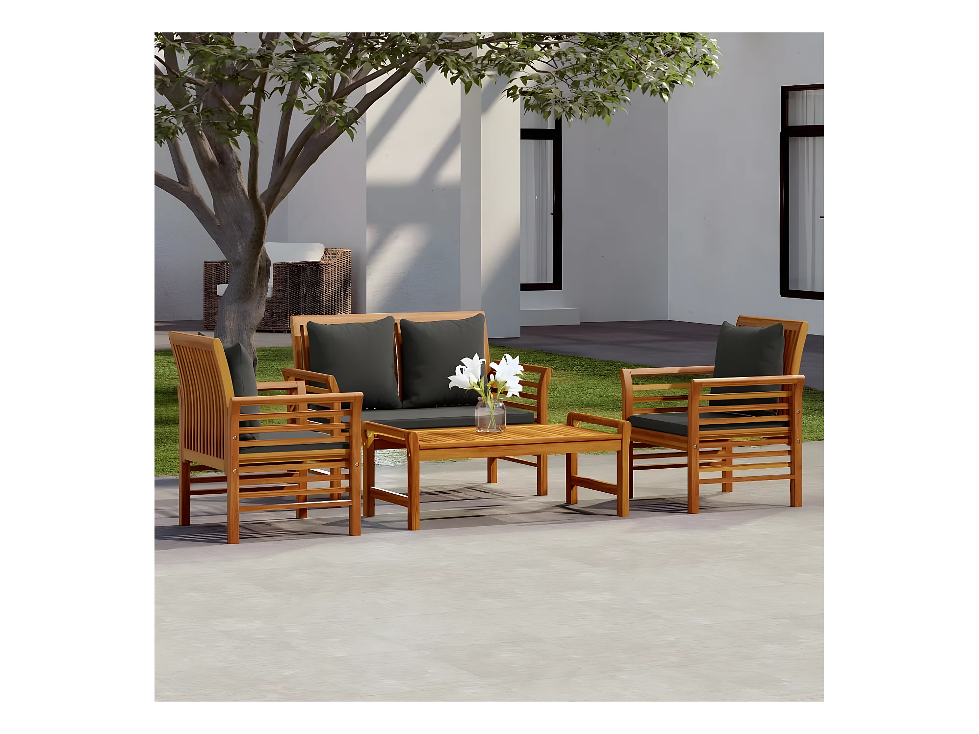 Salon de jardin 4 pièces avec coussins Bois massif d'acacia