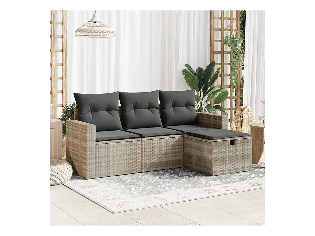 Salon de jardin 4 pièces avec coussins gris clair résine tressée
