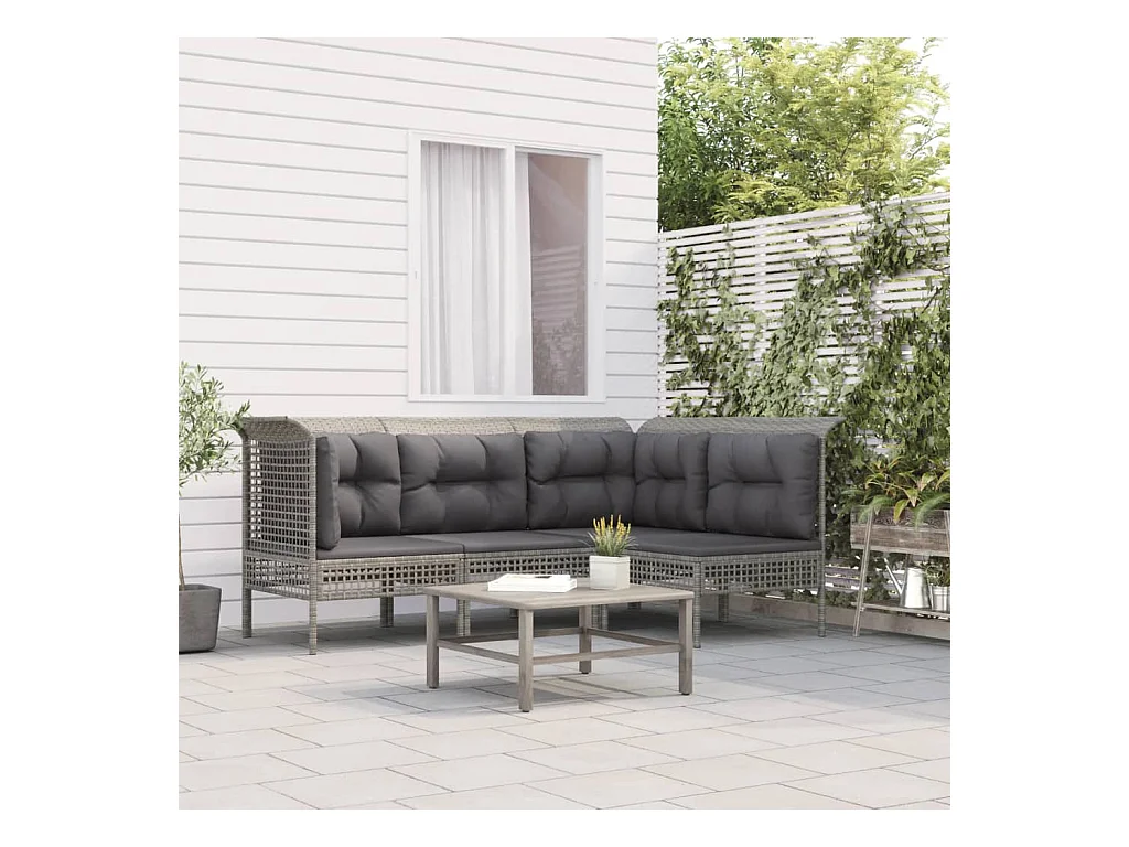 Salon de jardin 4 pièces avec coussins gris résine tressée