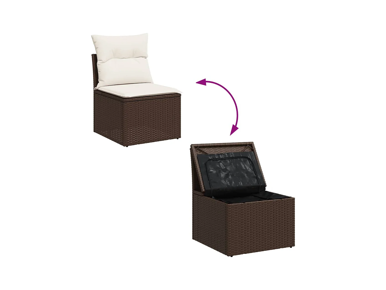 Salon de jardin 4 pièces avec coussins marron résine tressée