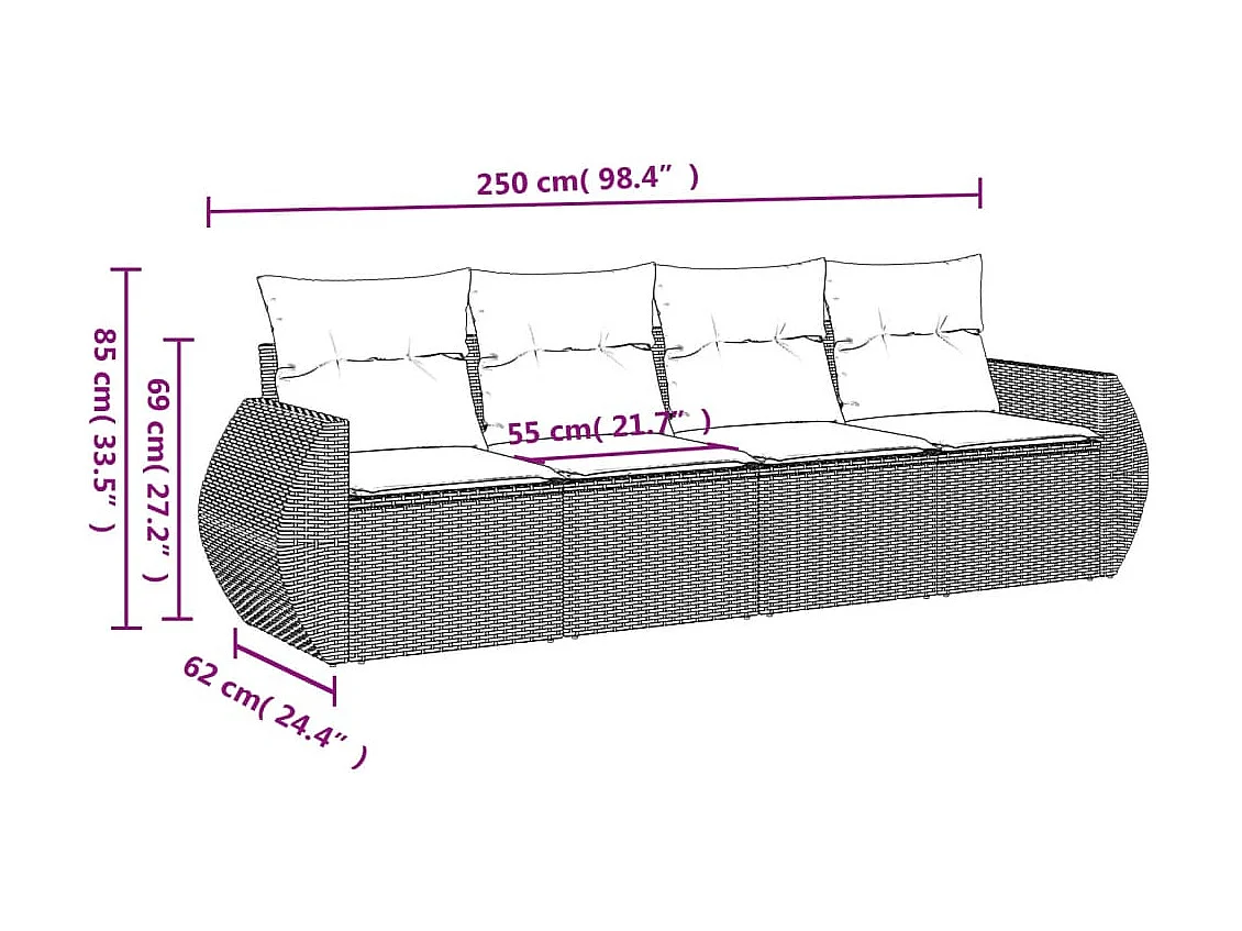 Salon de jardin 4 pcs avec coussins Résine tressée Marron BE11128