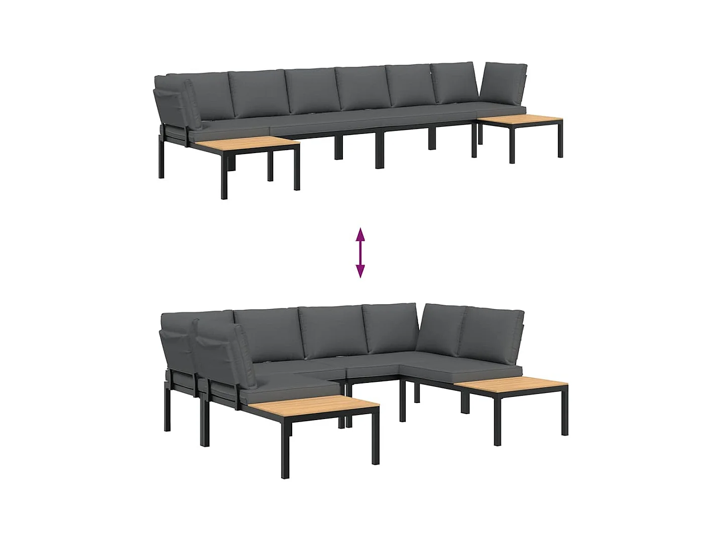 Salon de jardin 5 pièces avec coussins noir aluminium