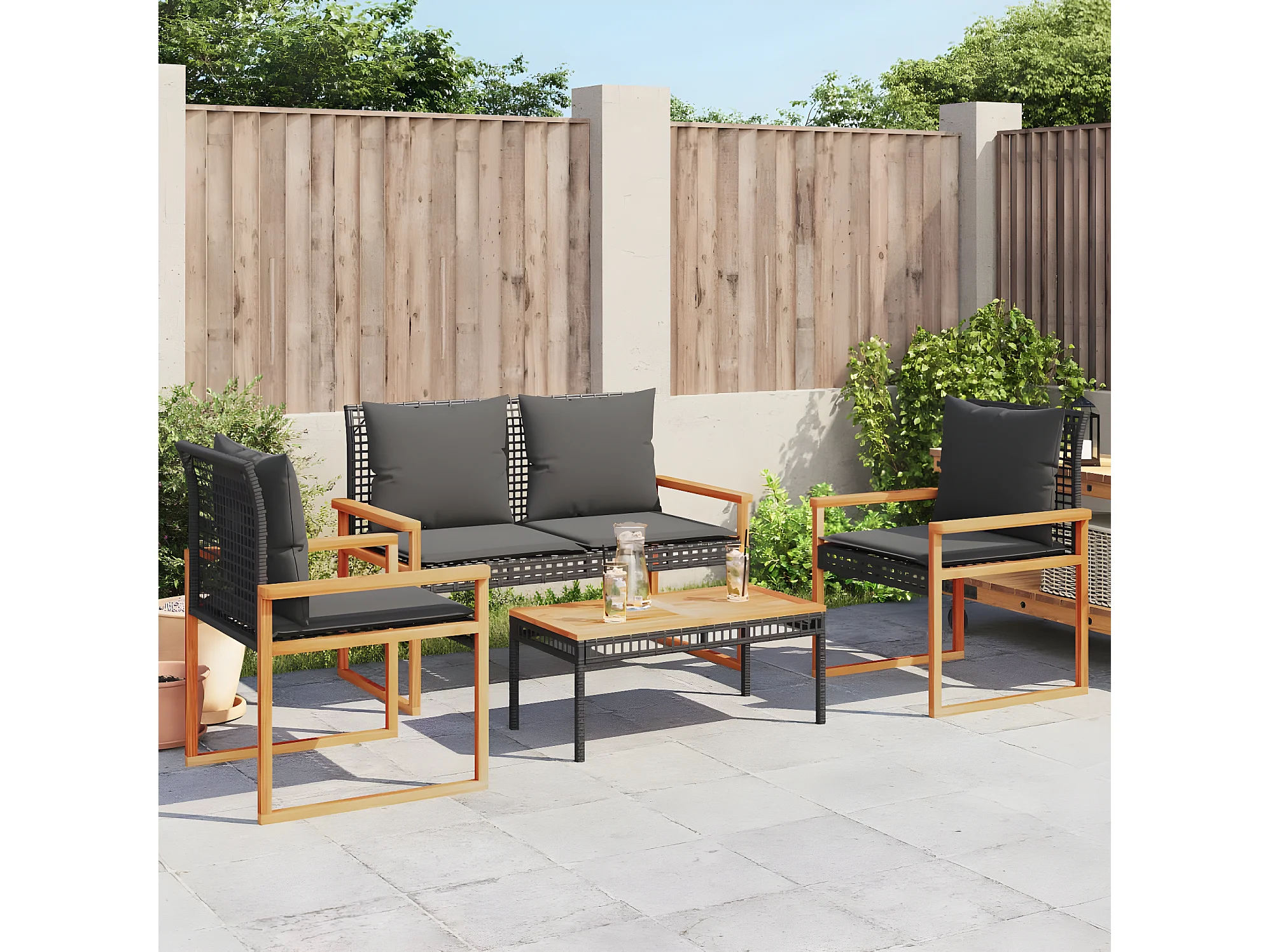 Salon de jardin 5 pcs noir résine tressée et bois d'acacia FR27841