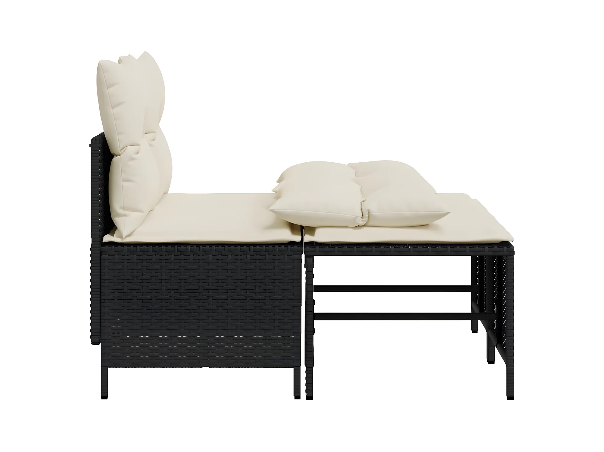 Salon de jardin 2 pièces avec coussins Résine tressée Noir