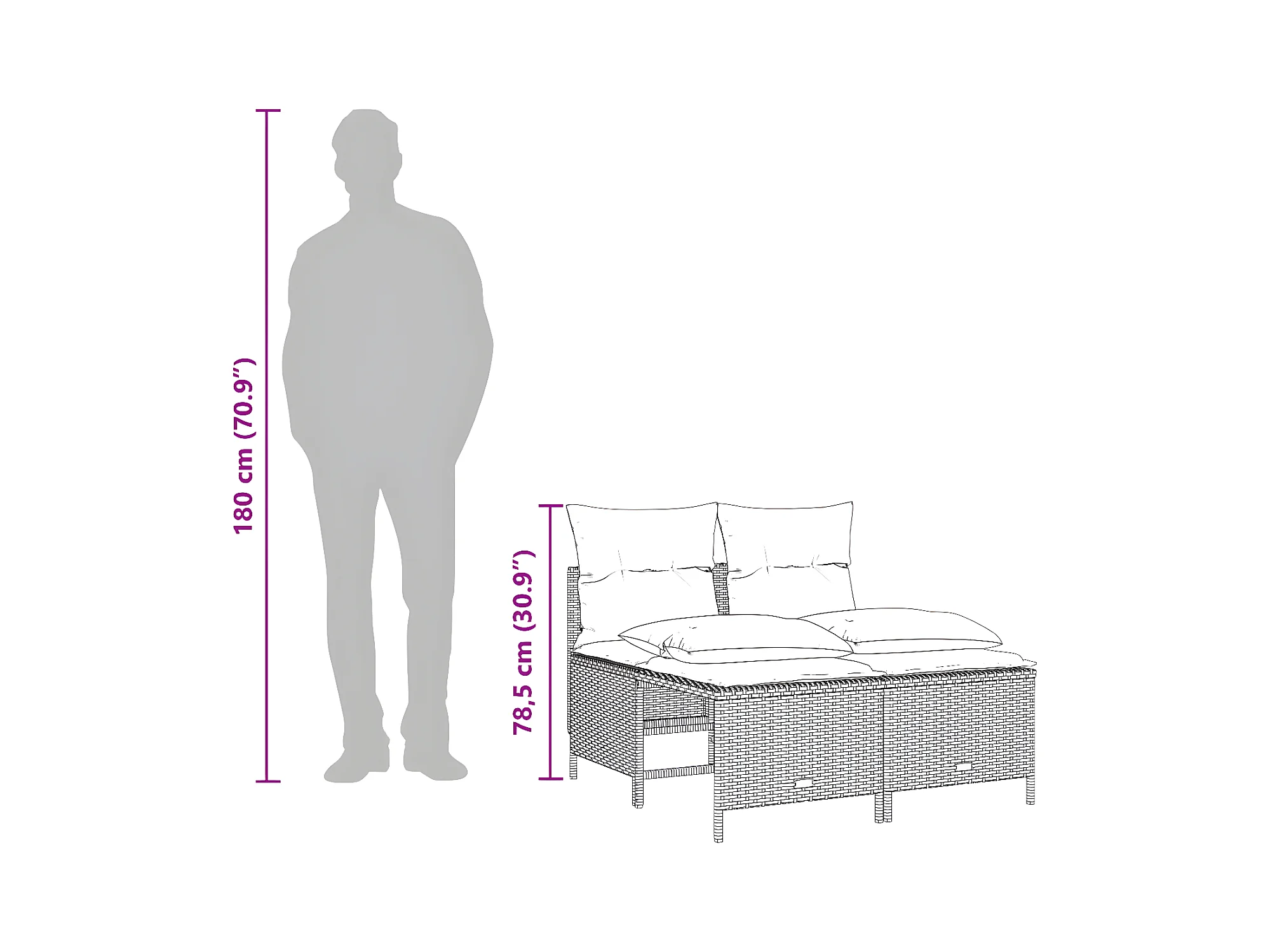 Salon de jardin 2 pcs avec coussins Résine tressée Noir BE32961