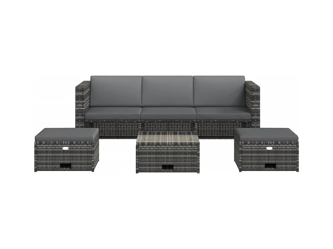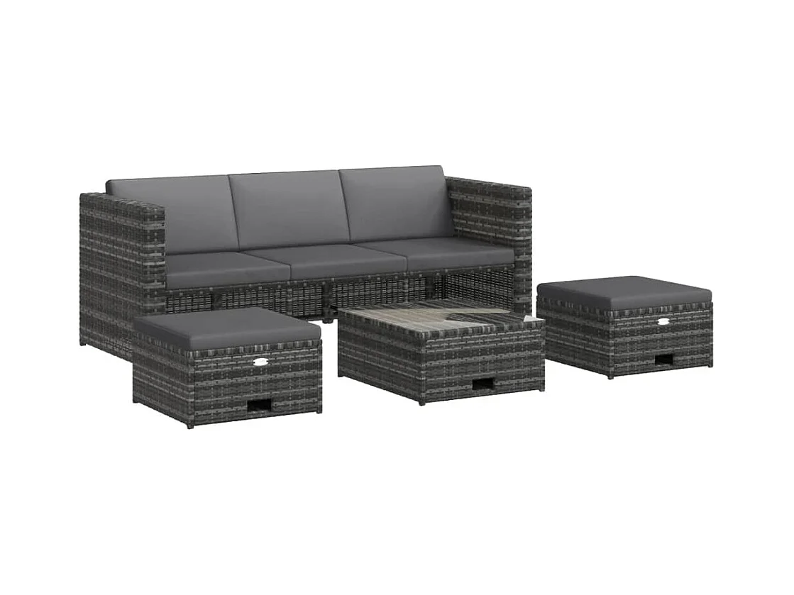 Salon de jardin 6 pièces avec coussins Plastique Gris