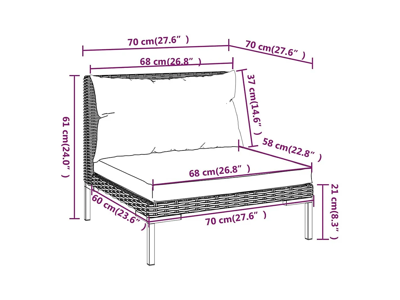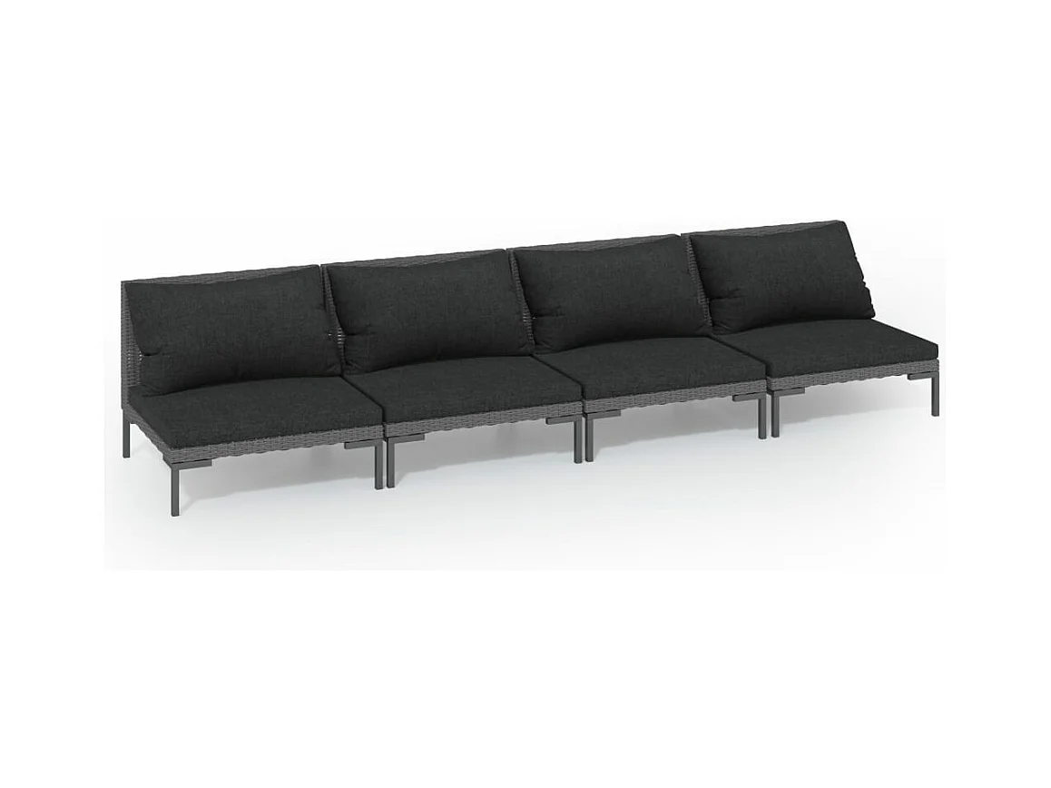 Salon de jardin 4 pièces avec coussins Résine tressée Gris foncé