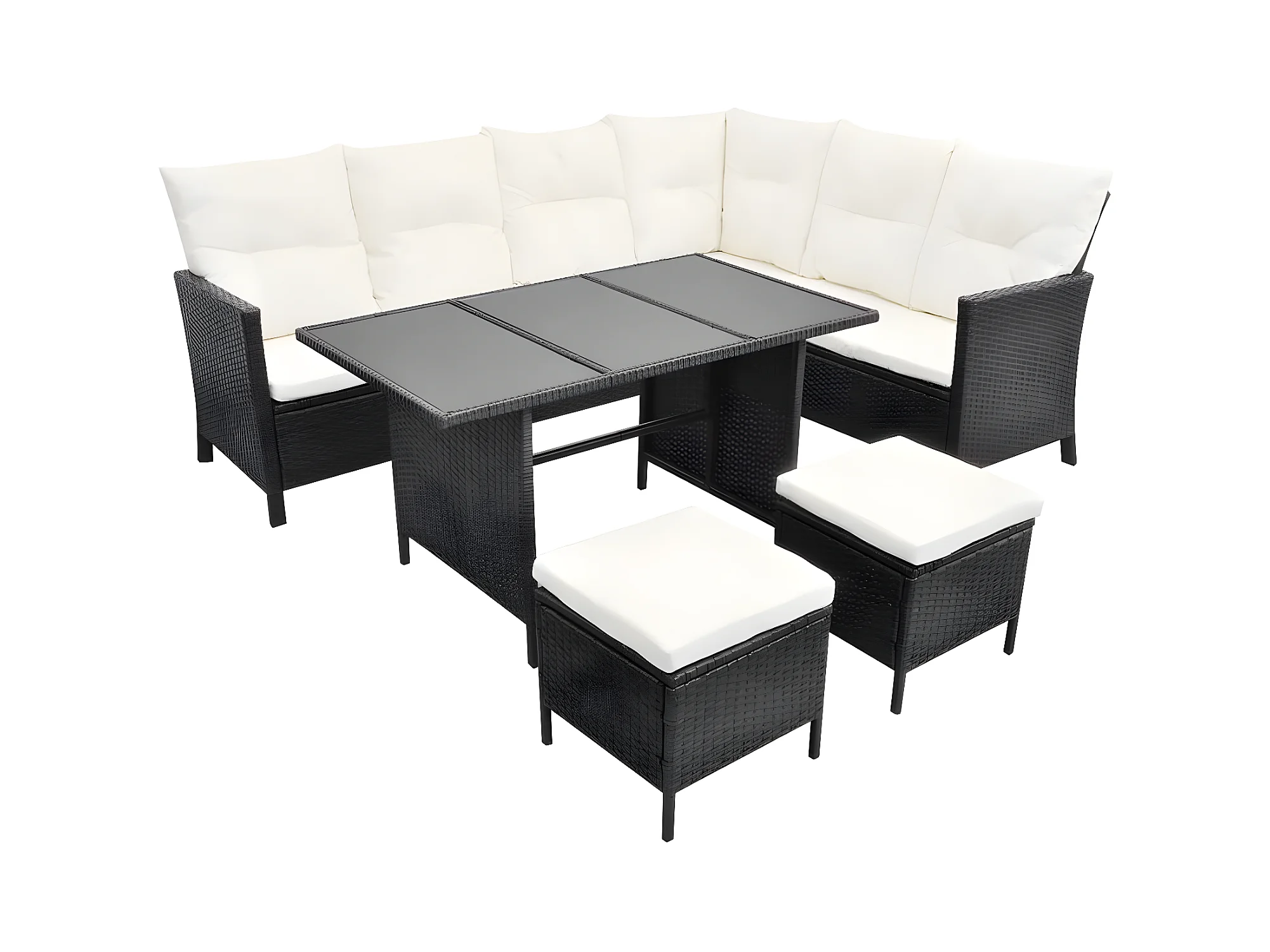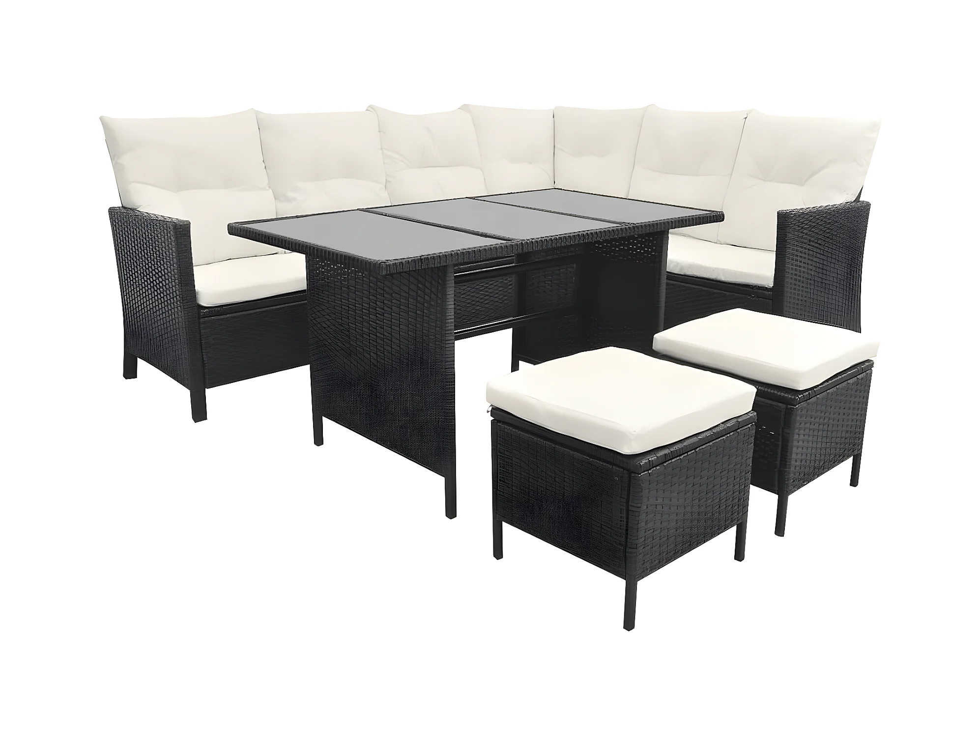 Salon de jardin 8 pièces avec coussins noir résine tressée