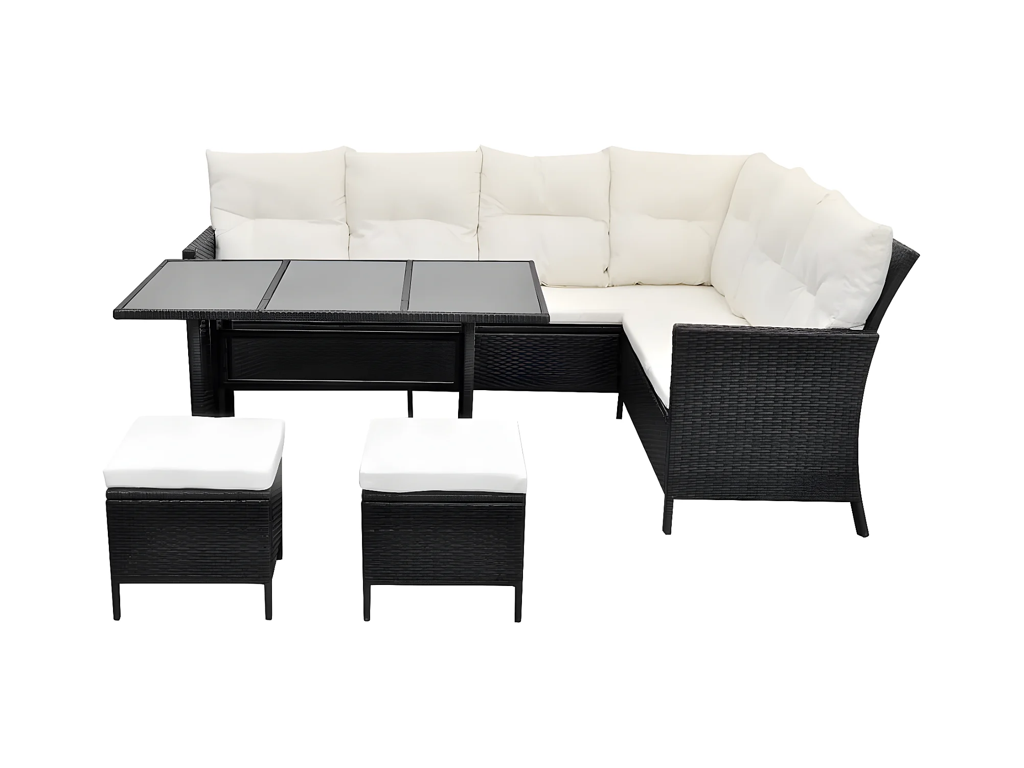 Salon de jardin encastrable 9 pièces Rotin et bois d'acacia Noir