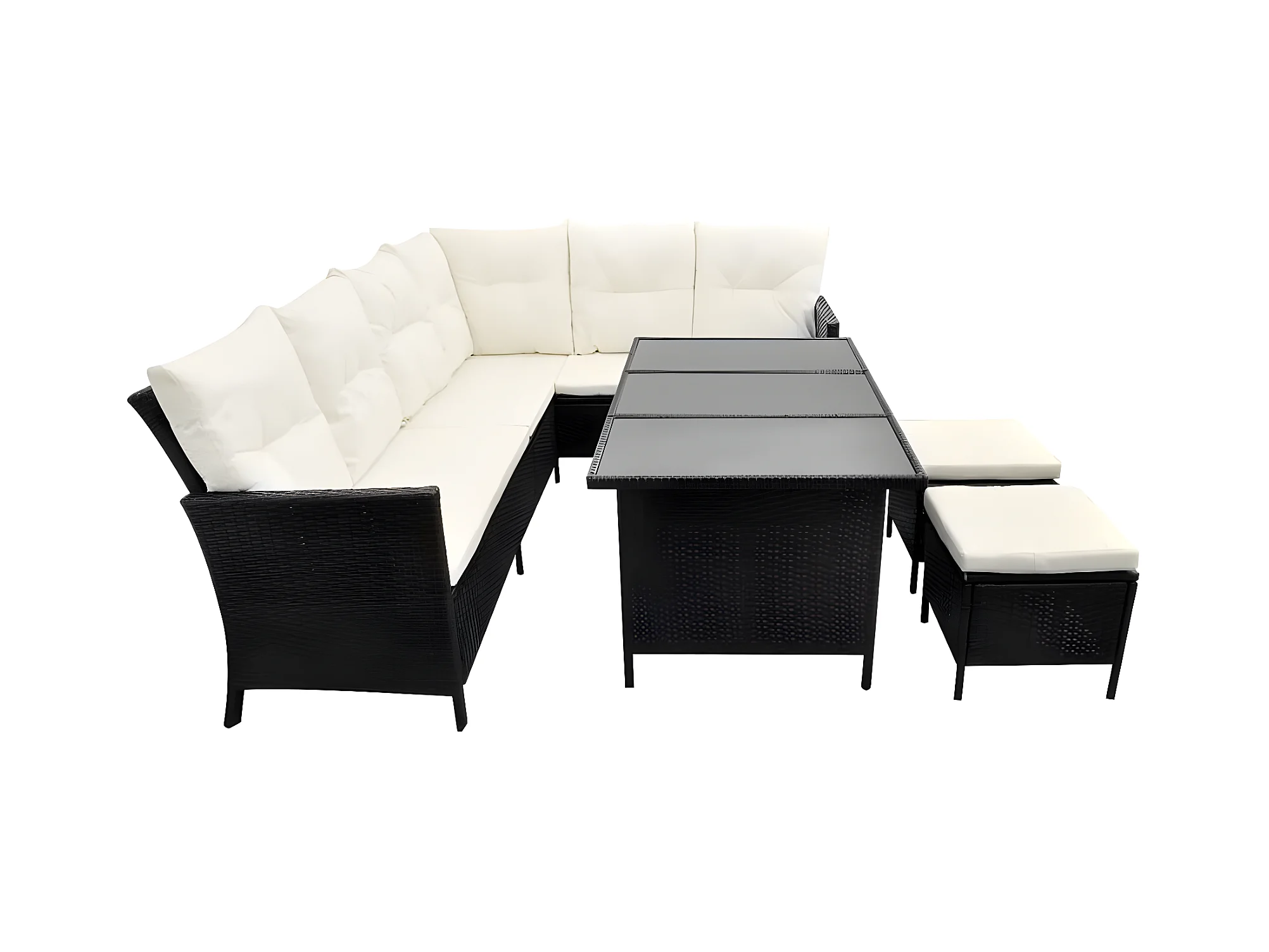 Salon de jardin 9 pièces avec coussins Résine tressée Noir