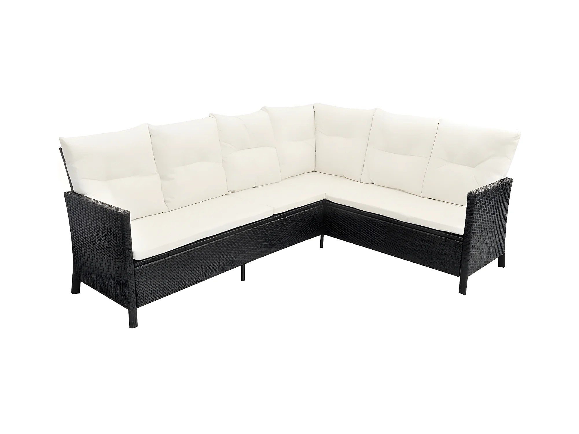 Salon de jardin 4 pièces avec coussins Résine tressée Noir