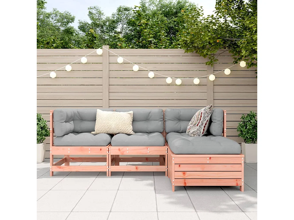 Salon de jardin 4 pièces avec coussins bois massif douglas