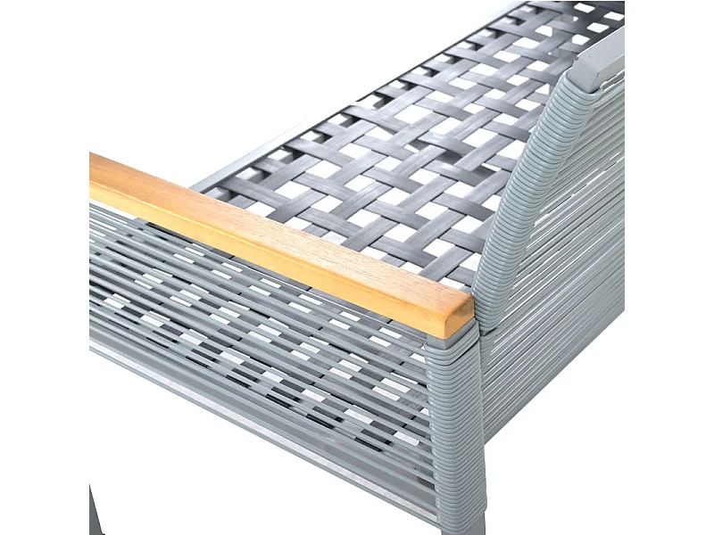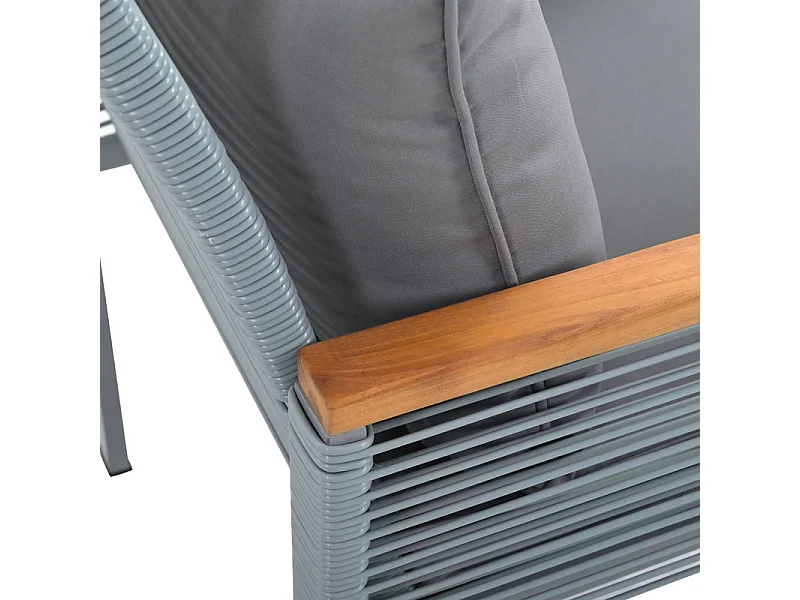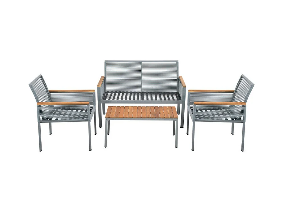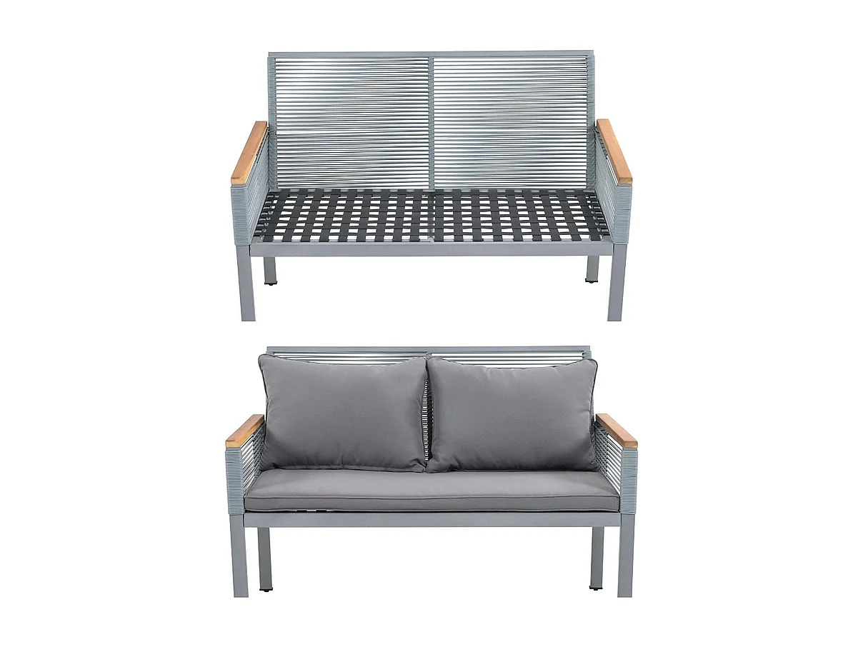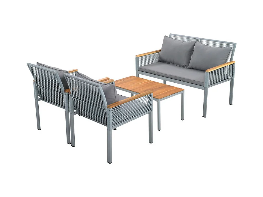 Salon de Jardin en acier 4 places - canapé、2 fauteuils et table basse - décoré de PE rotin et bois d'acacia - Gris