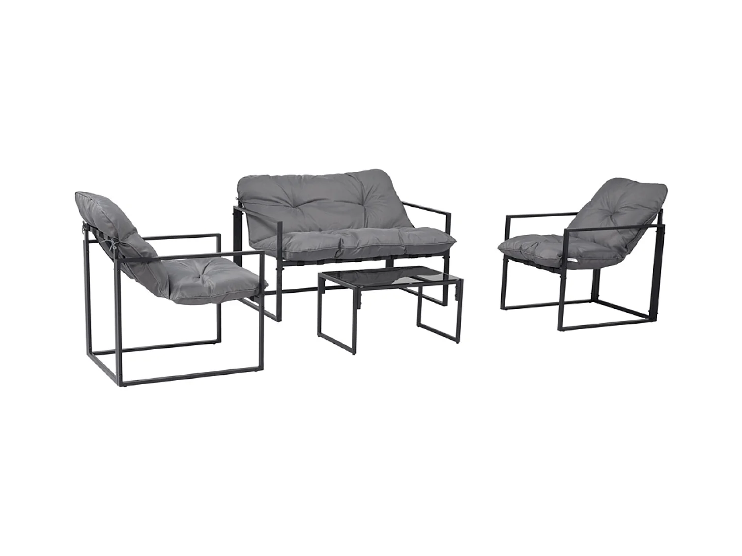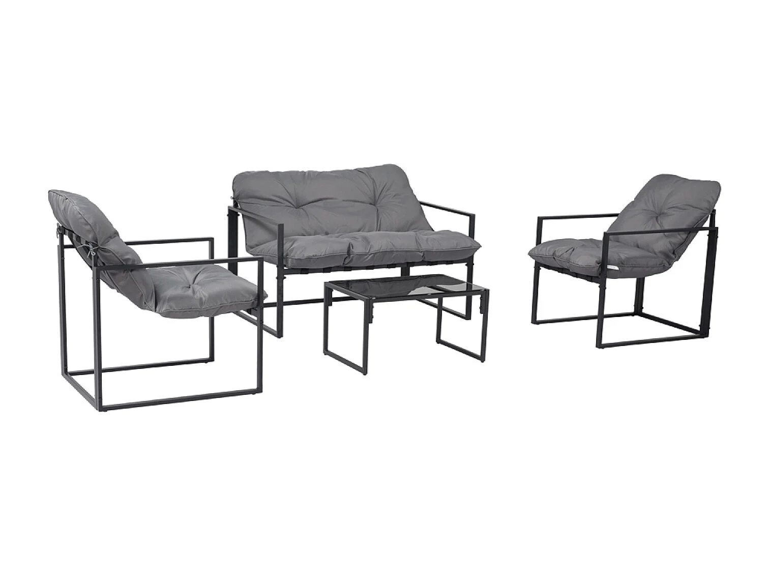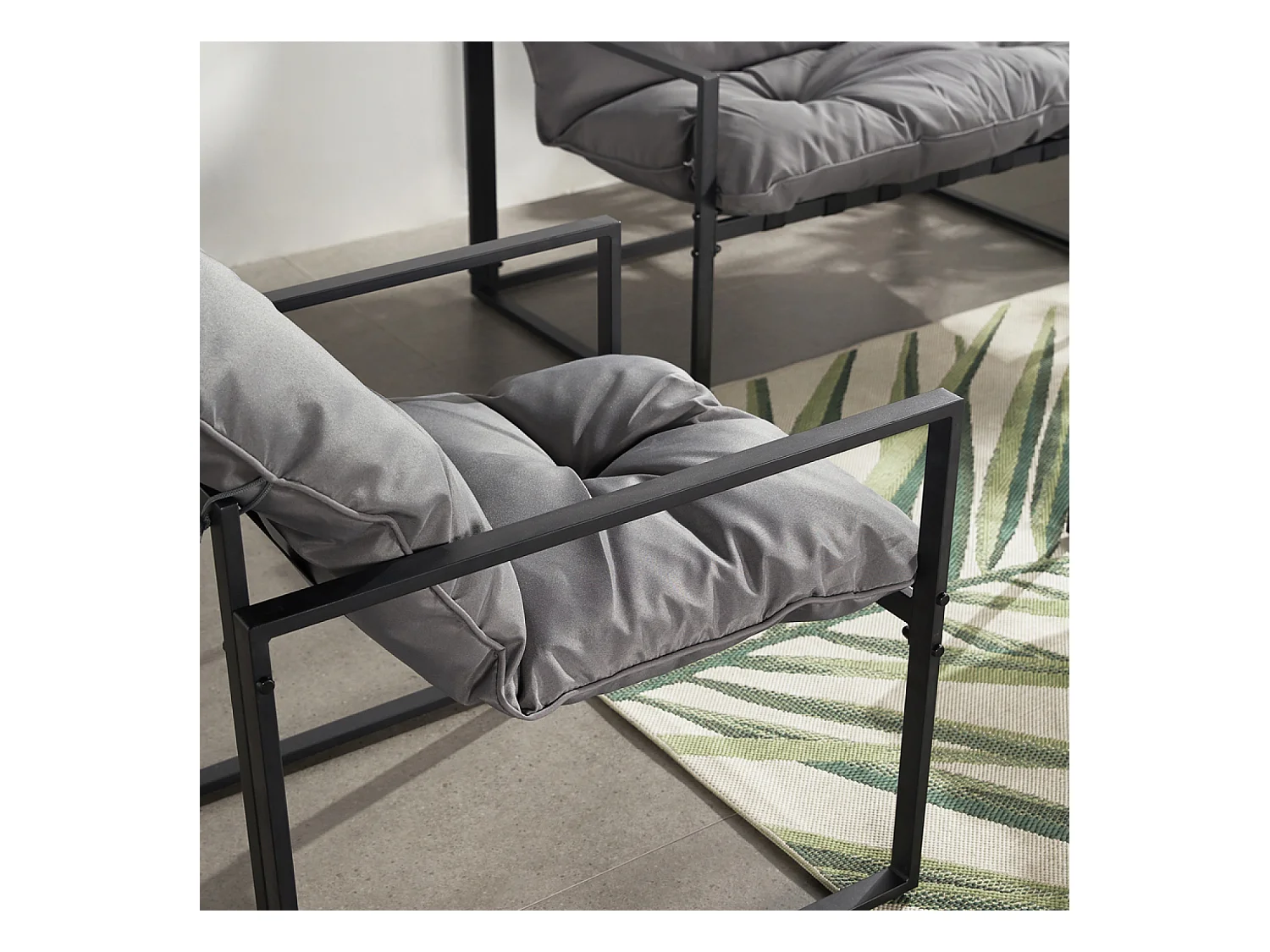 Salon de jardin 4 places contemporain noir et coussins gris RABAT