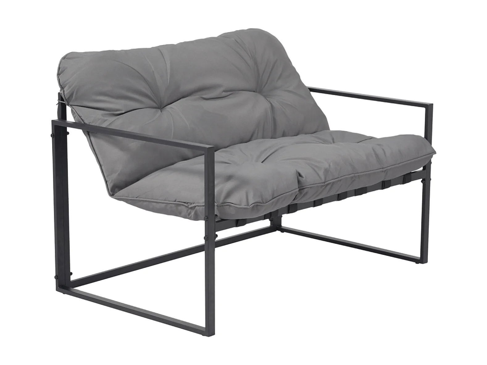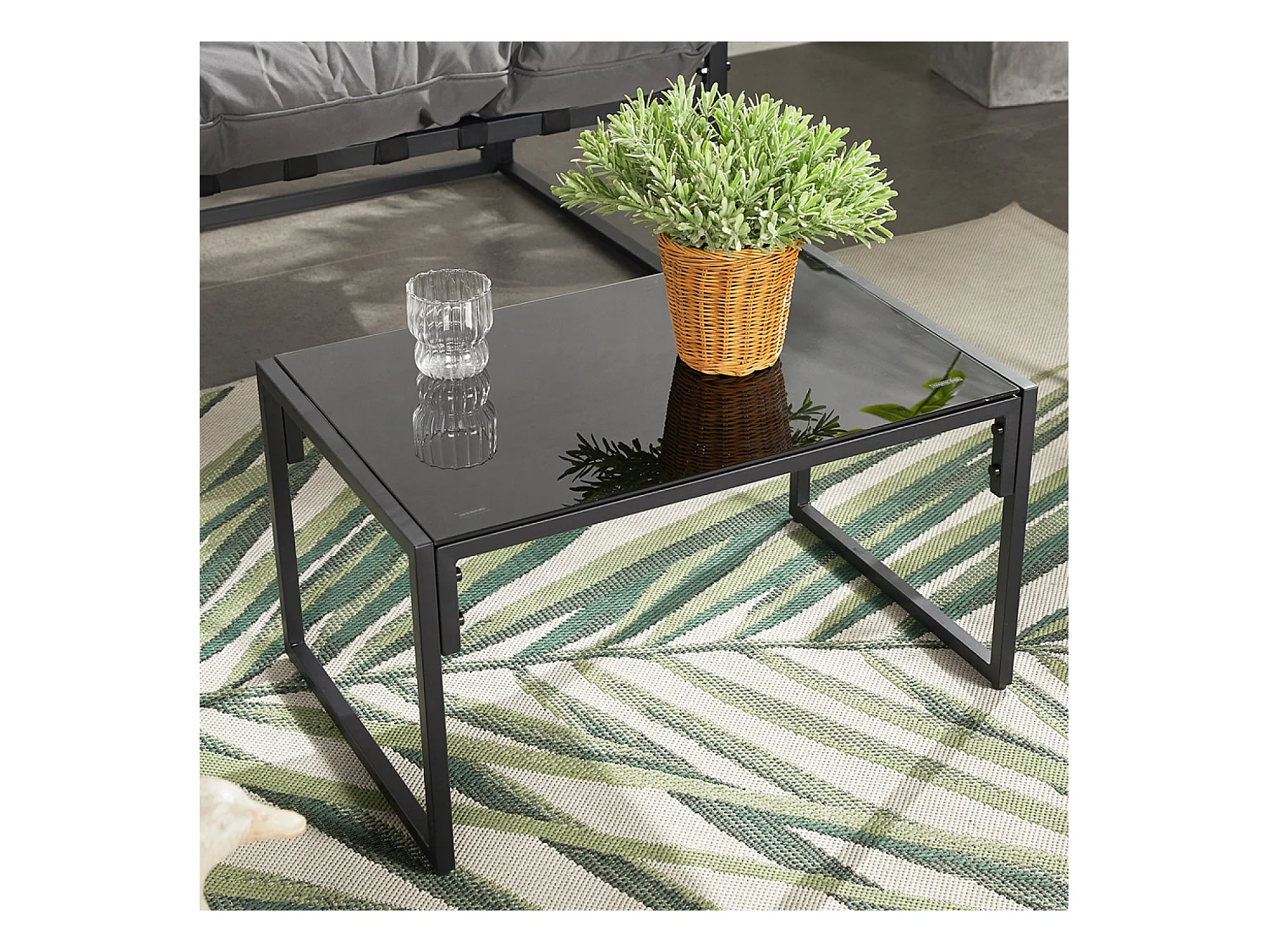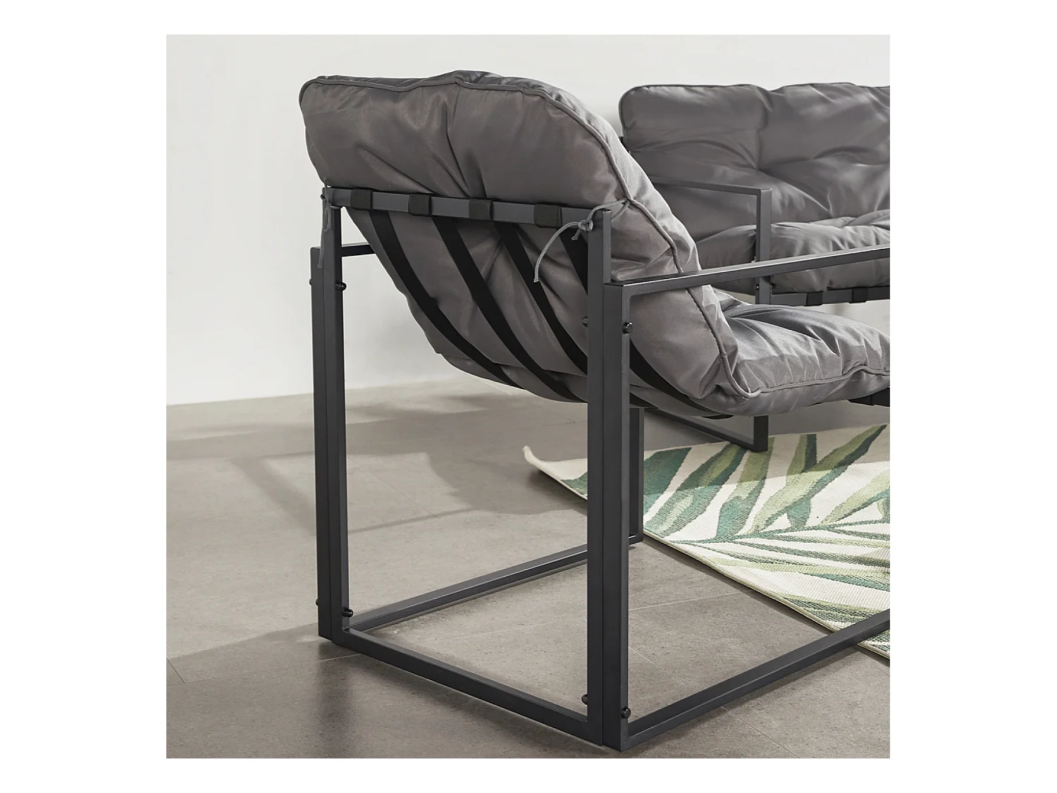 Salon de jardin 4 places contemporain noir et coussins gris RABAT