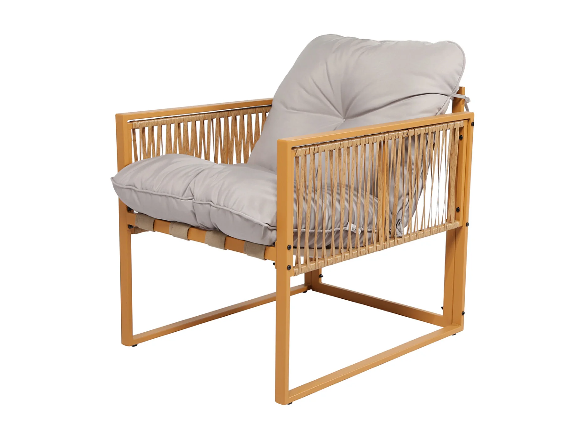 Salon de jardin 4 places effet rotin coussins gris clair TURINI