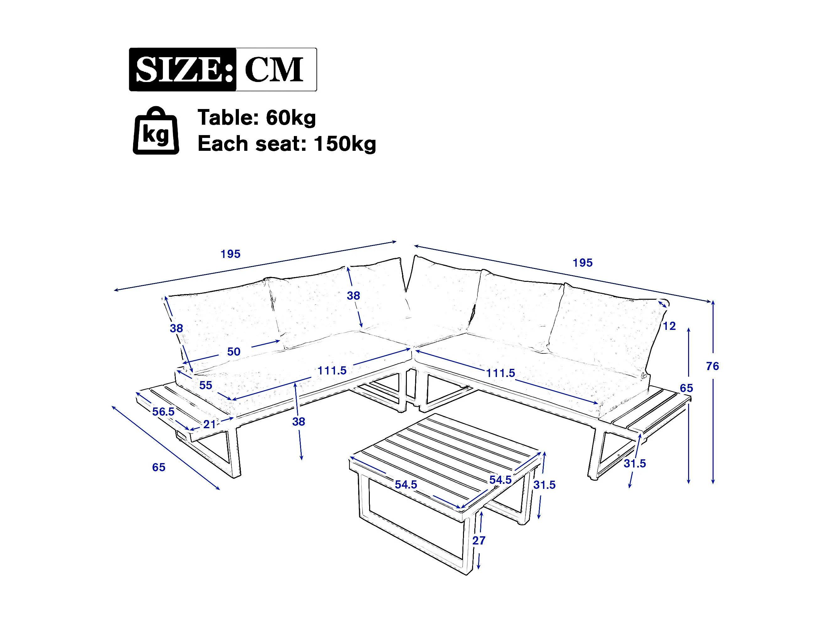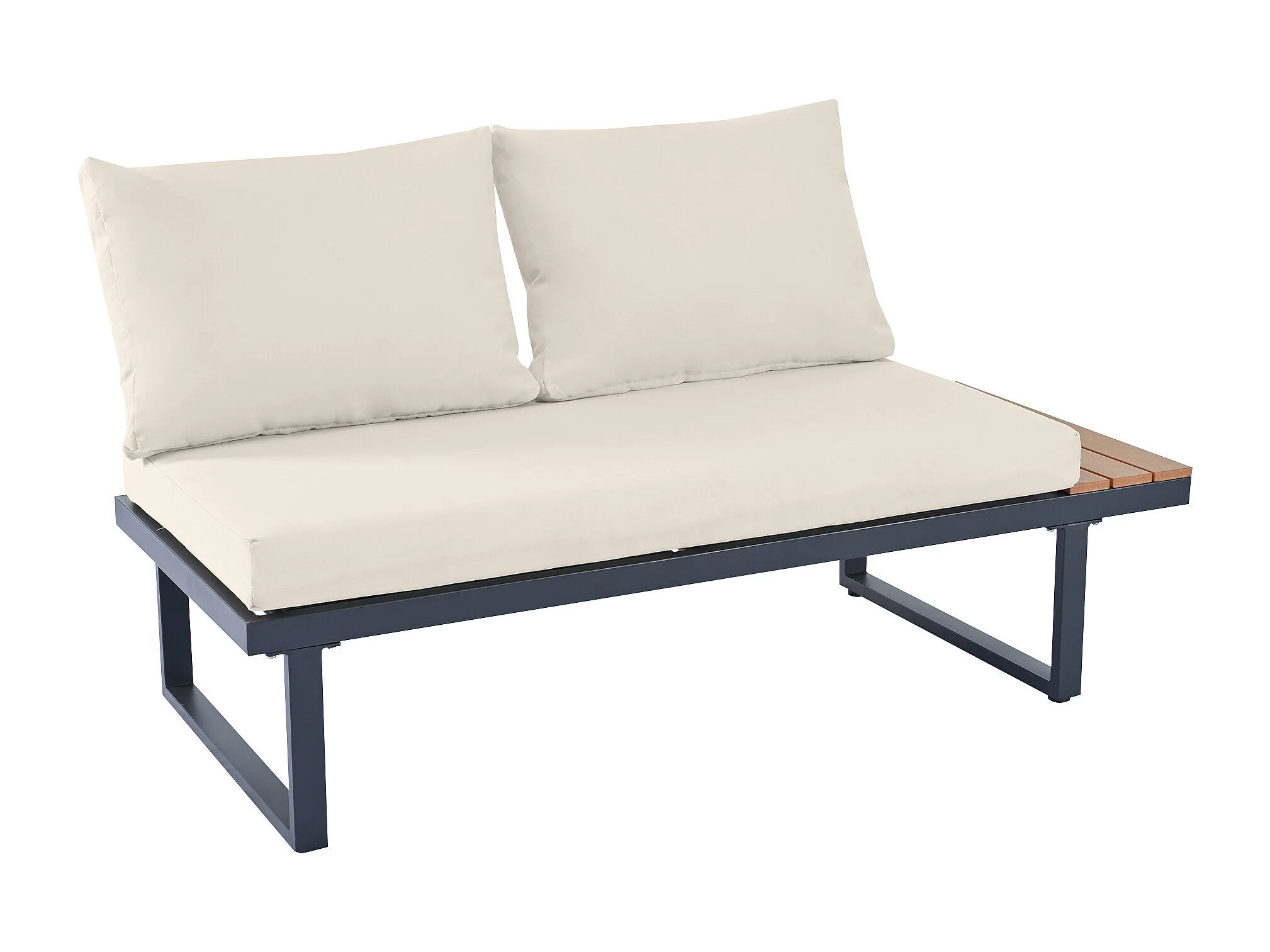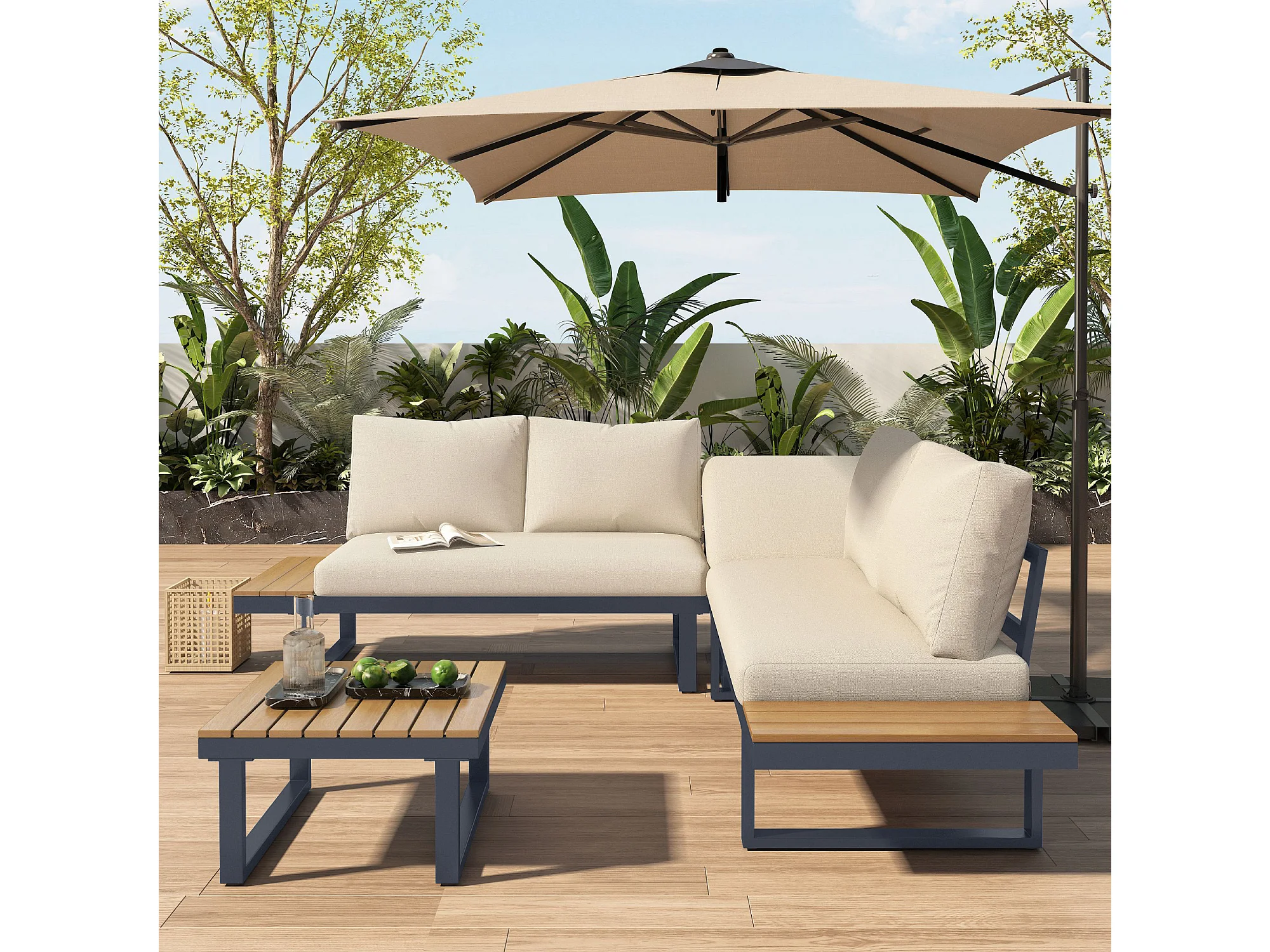 Salon de jardin - 4 places - en Acier galvanisé - canapé d'angle - 1 table en grain de bois - Beige