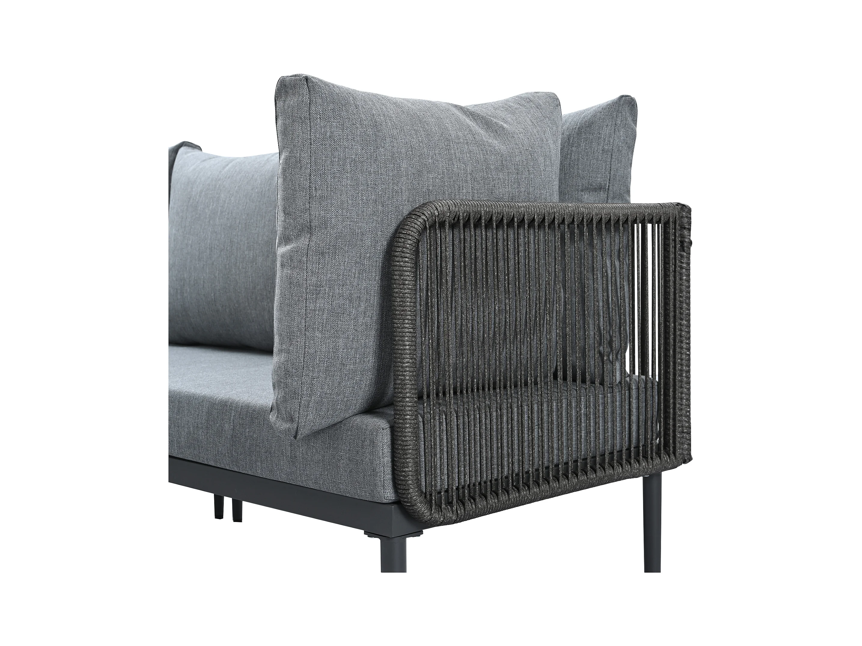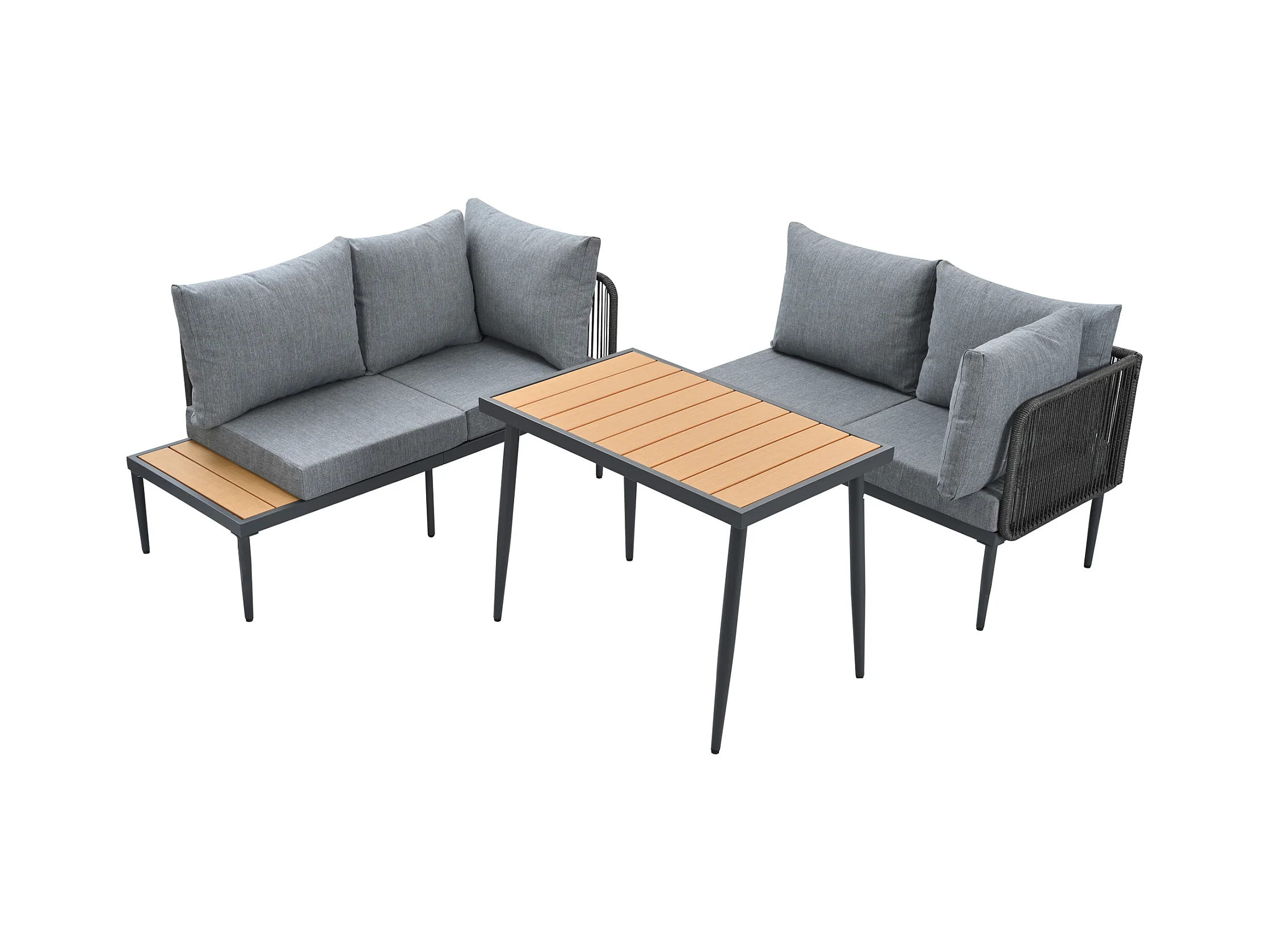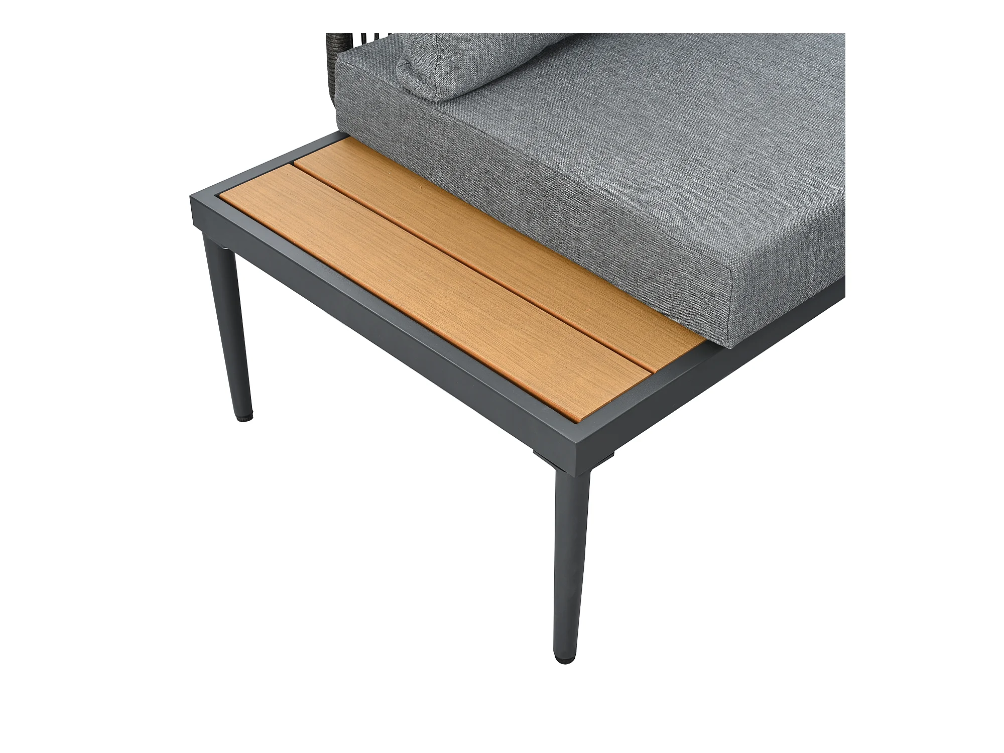 Salon de jardin 4 places - en fer galvanisé léger - plateau en plastique-bois - anapé d'angle + table à manger - gris