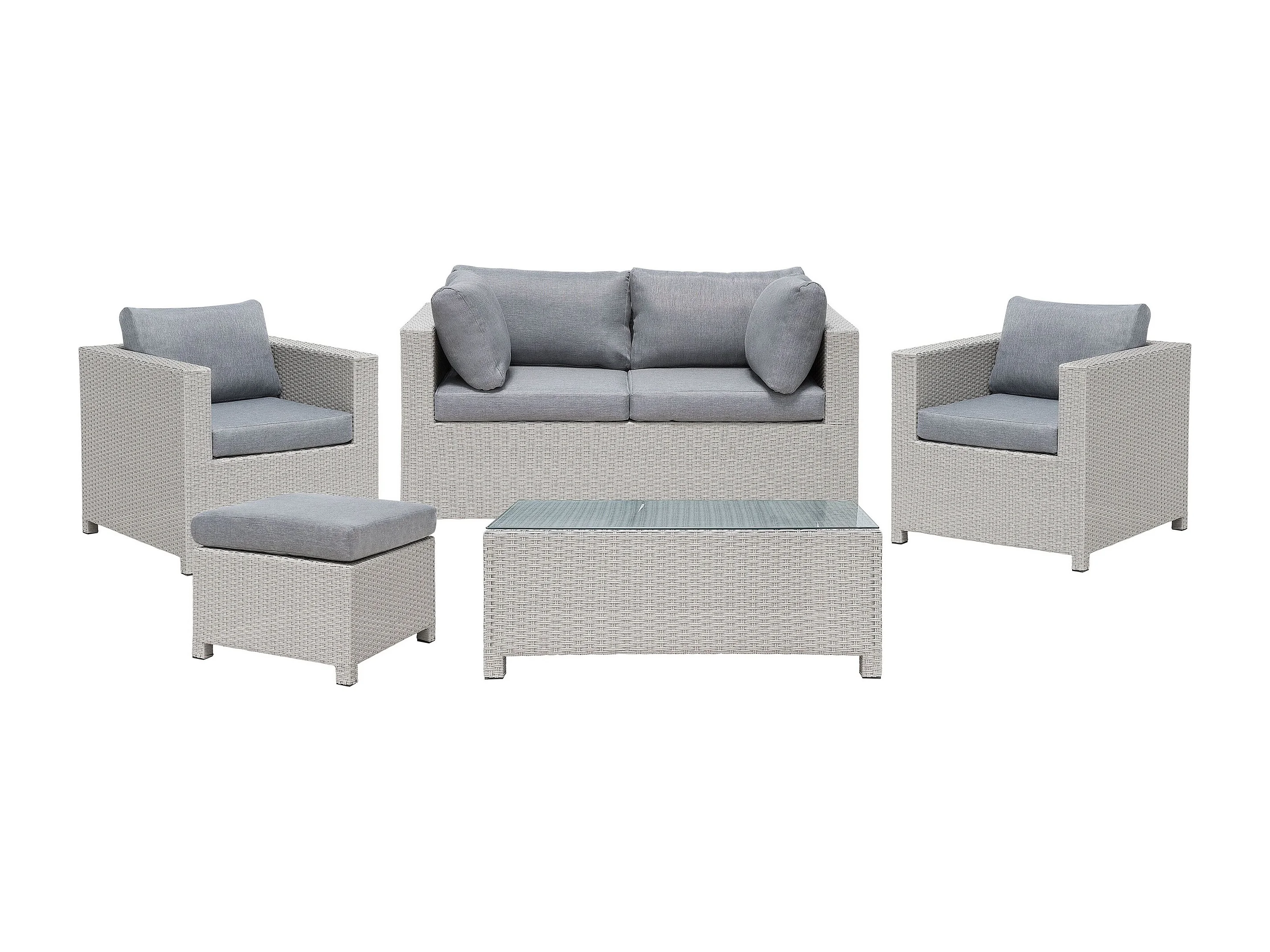 Ensemble de salon de jardin avec table et ottoman 4 places MILANO Gris clair