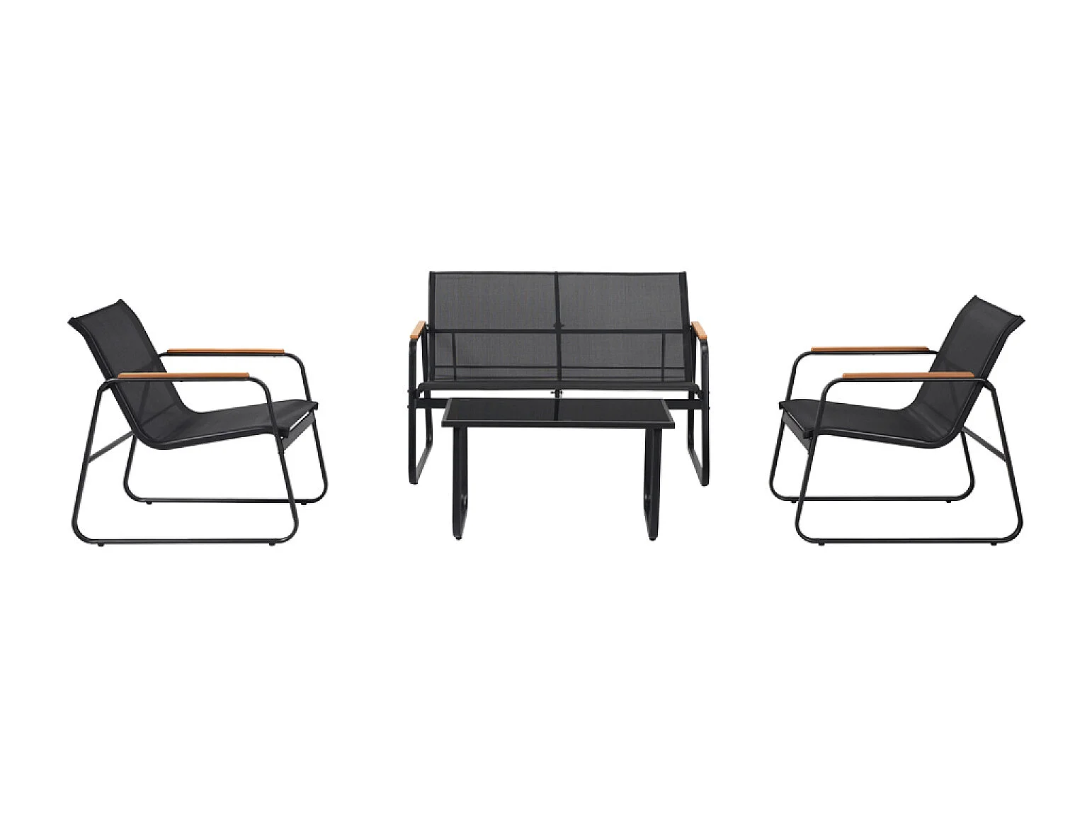 Salon de jardin 4 places en toile de polyester noir AURORA