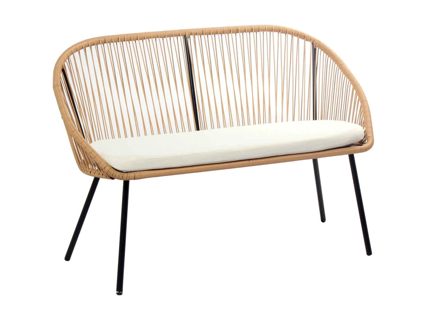 Salon de jardin 4 places esprit rotin naturel et coussins beiges Ravello