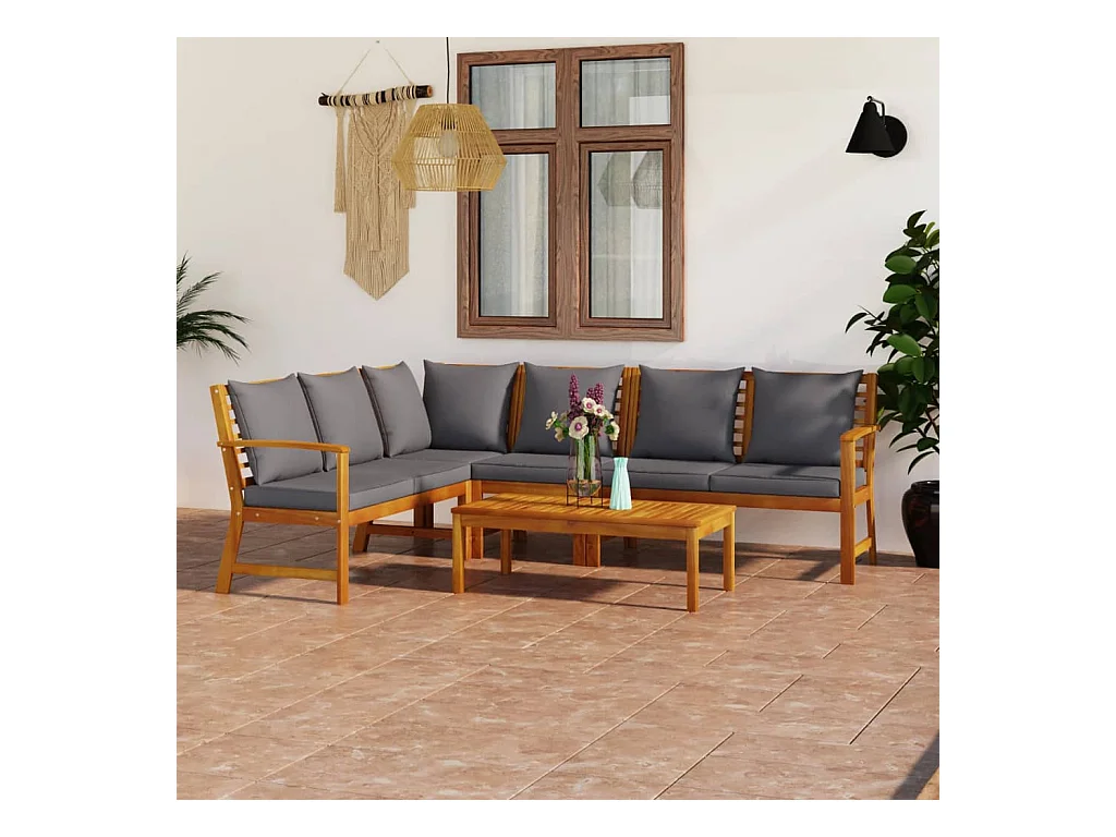 Salon de jardin 5 pcs avec coussin Bois d'acacia solide