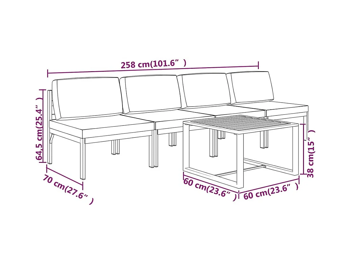 Salon de jardin 5 pcs avec coussins Aluminium Anthracite