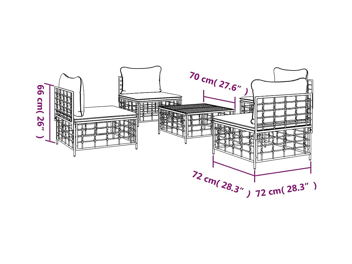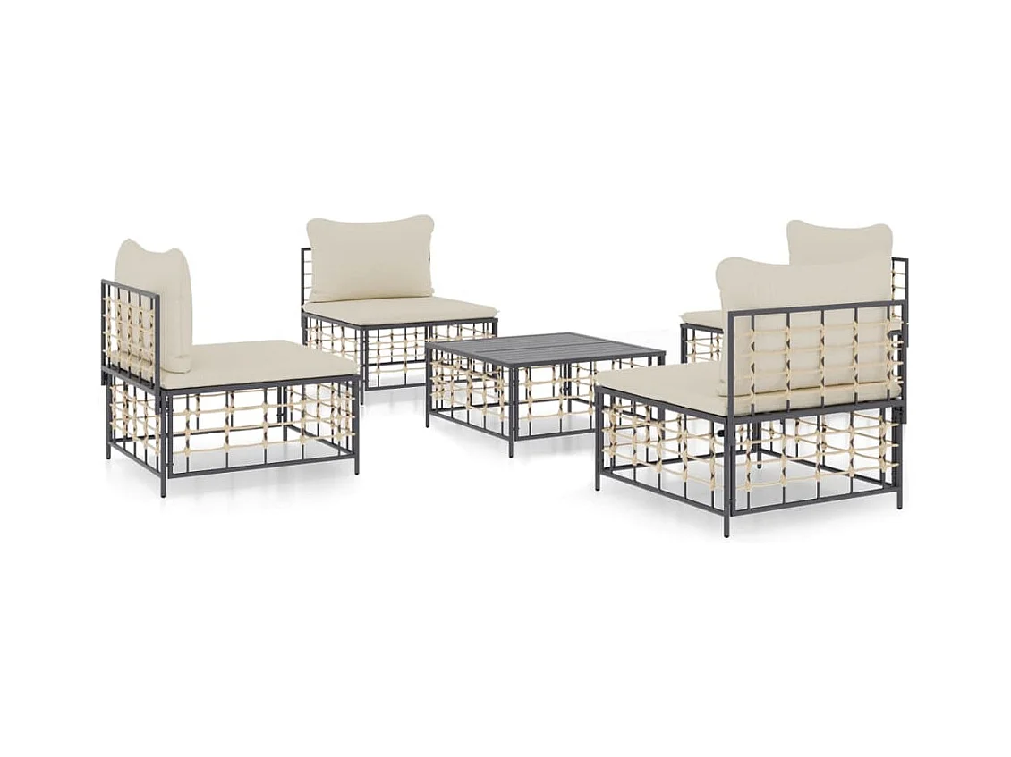 Salon de jardin 5 pcs avec coussins anthracite résine tressée