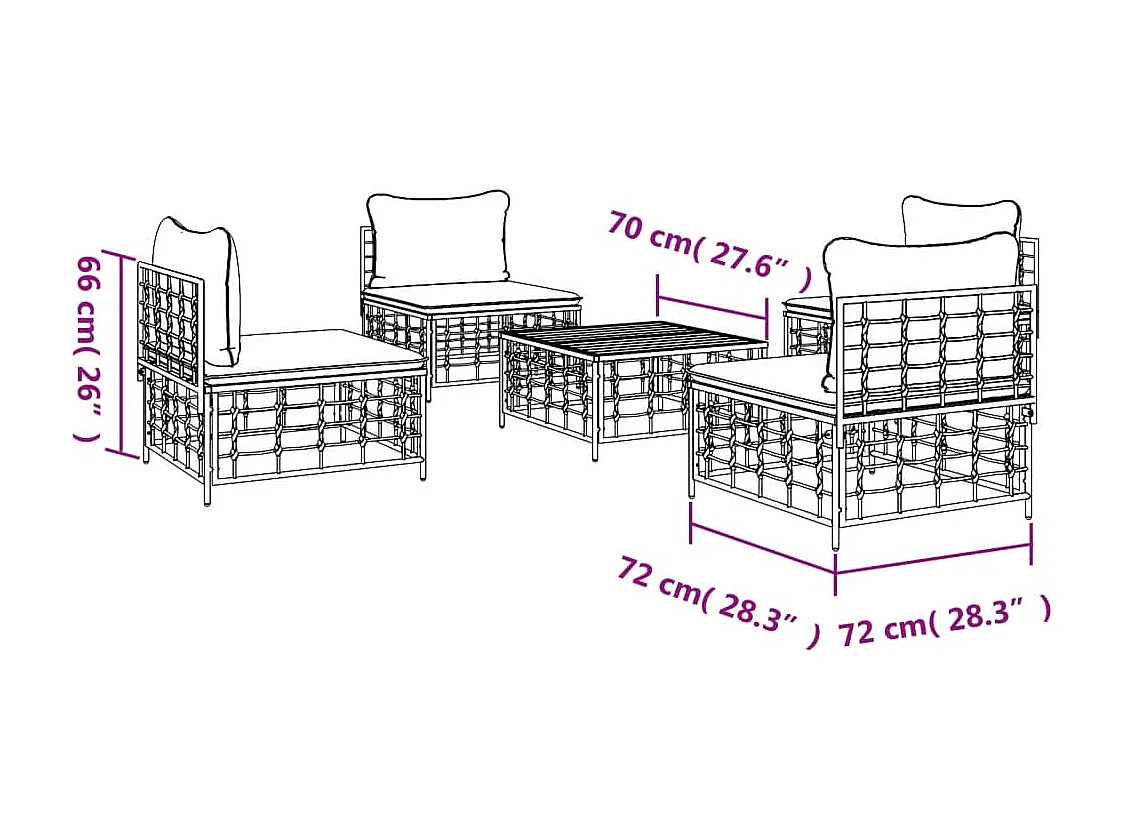 Salon de jardin 5 pcs avec coussins anthracite résine tressée