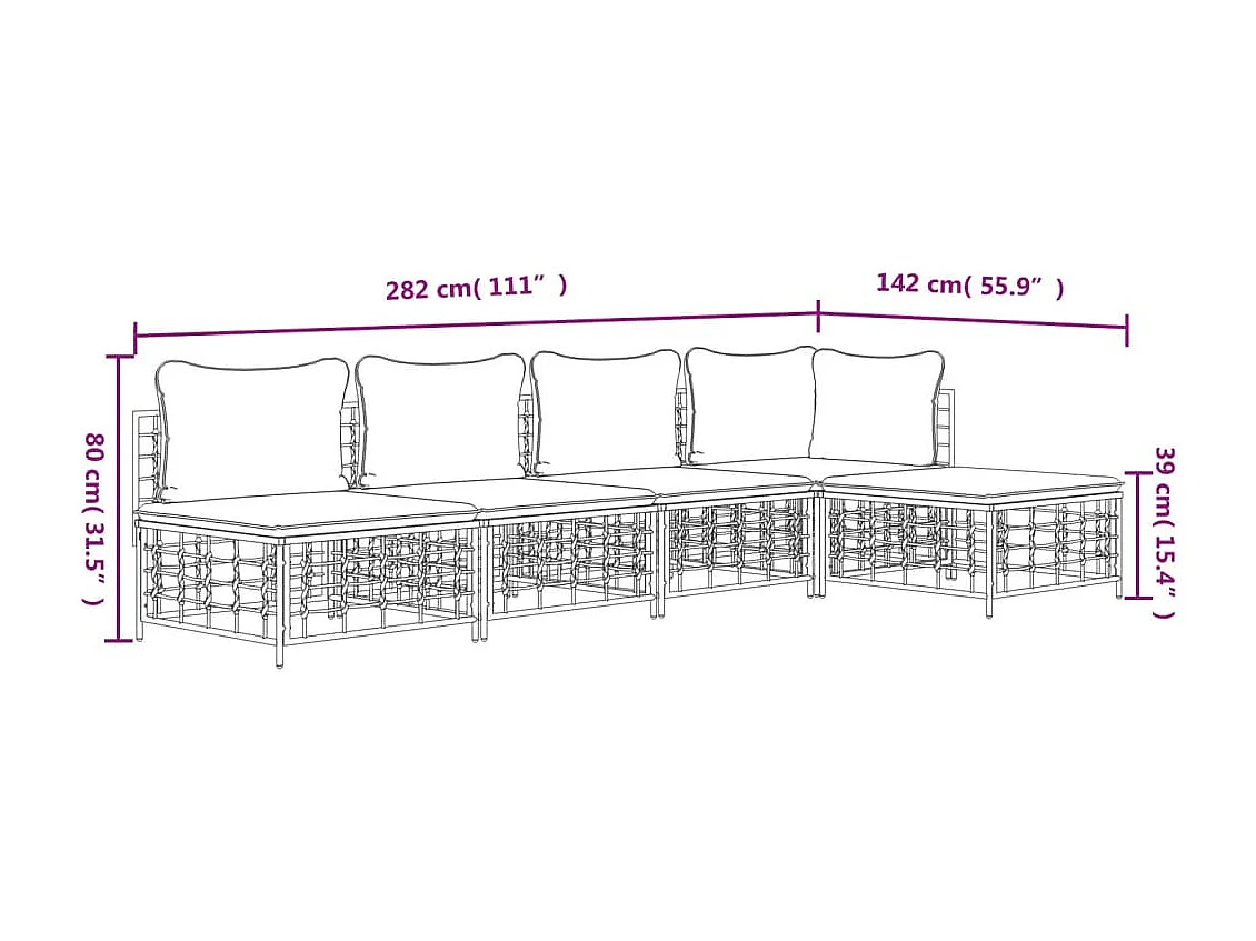 Salon de jardin 5 pcs avec coussins anthracite résine tressée