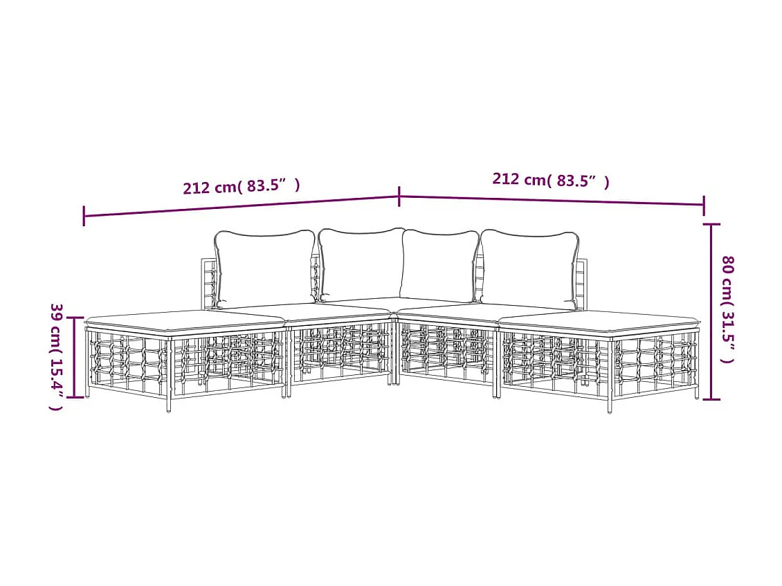 Salon de jardin 5 pcs avec coussins anthracite résine tressée