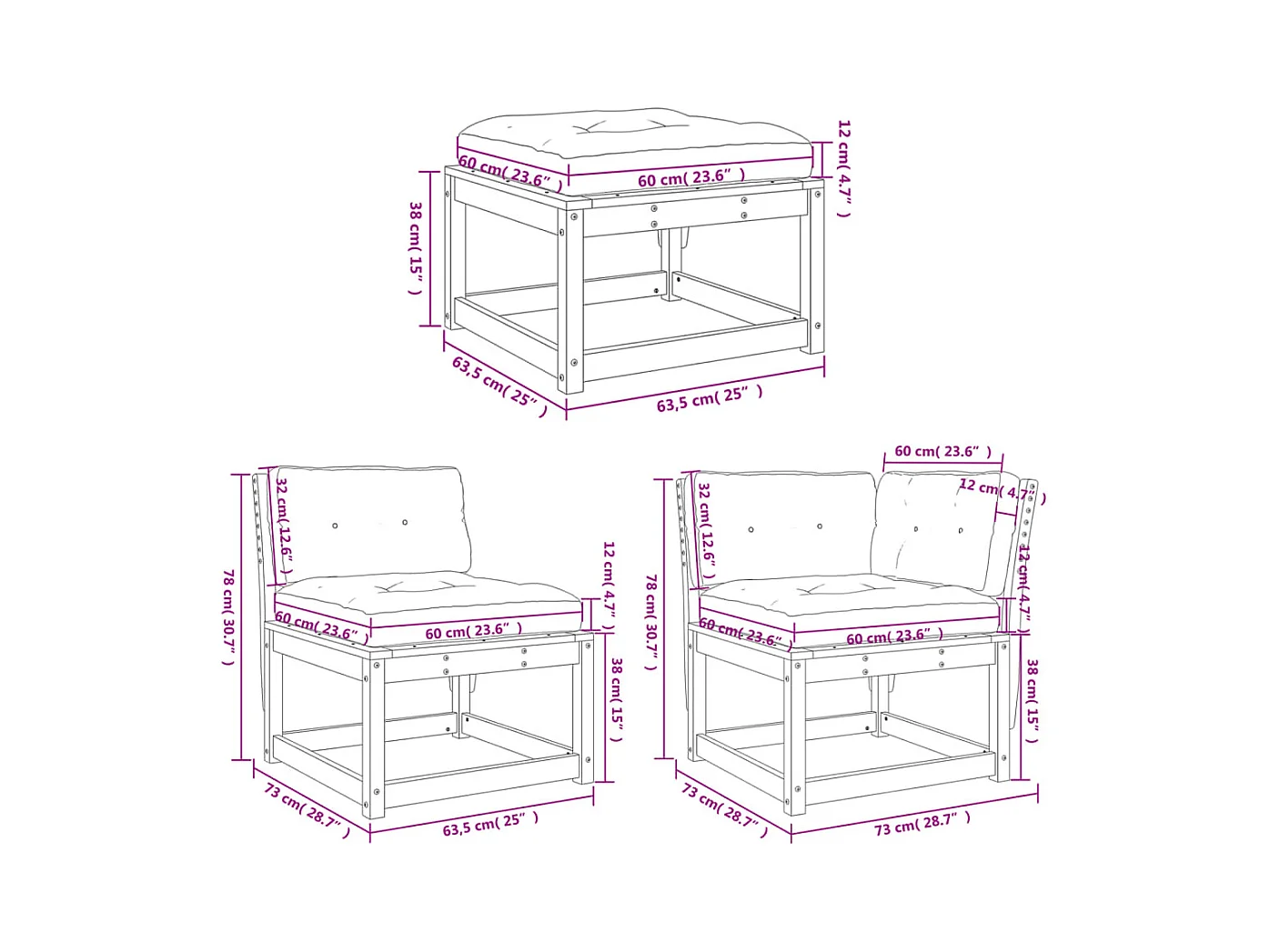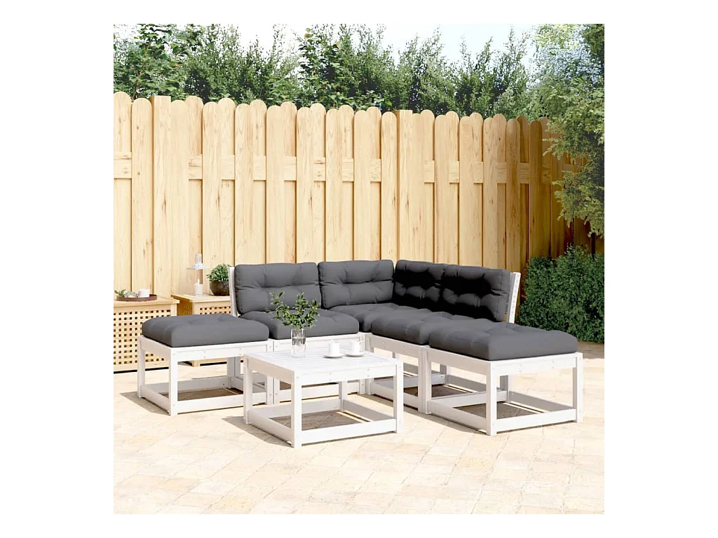 Salon de jardin 6 pcs avec coussins blanc bois massif de pin