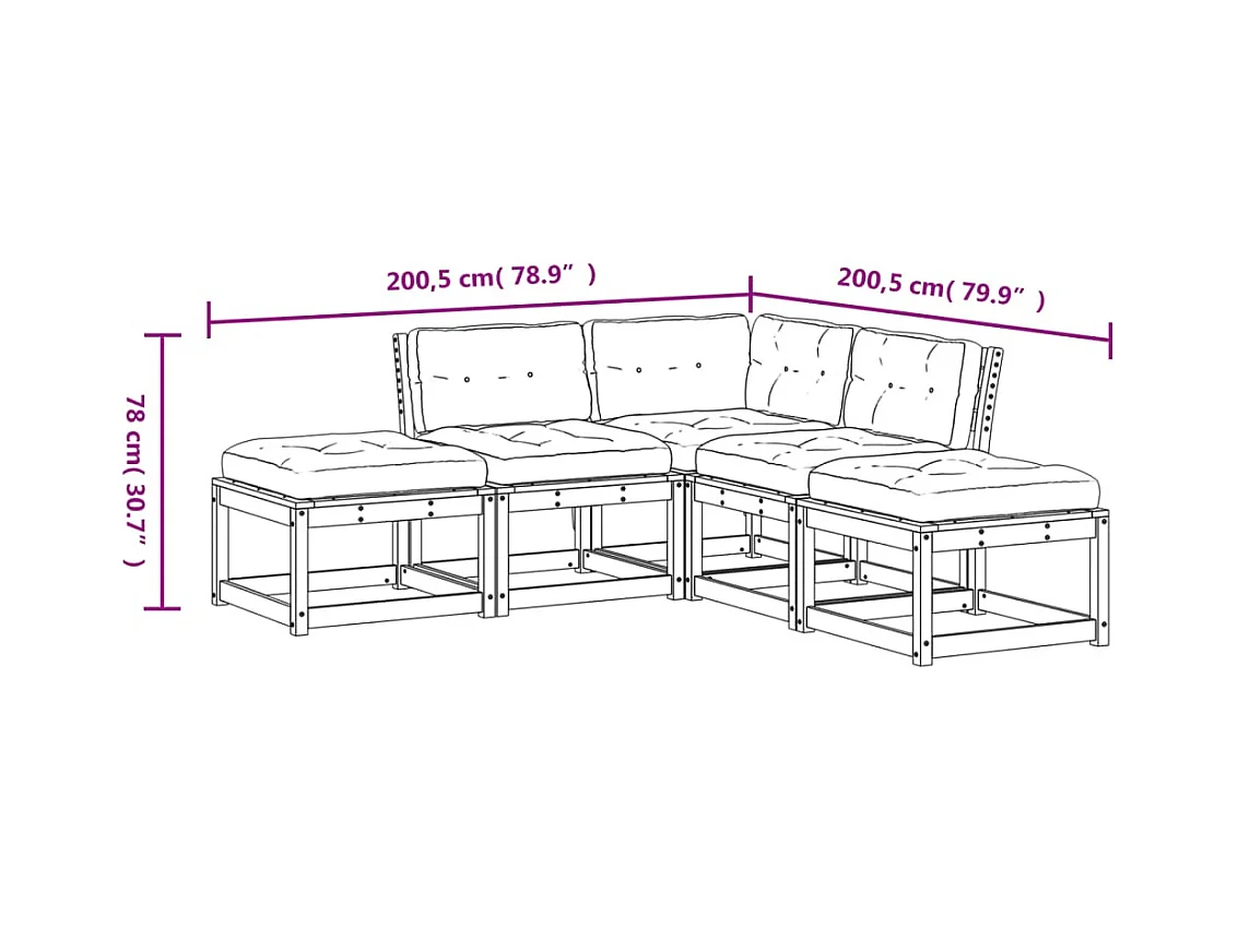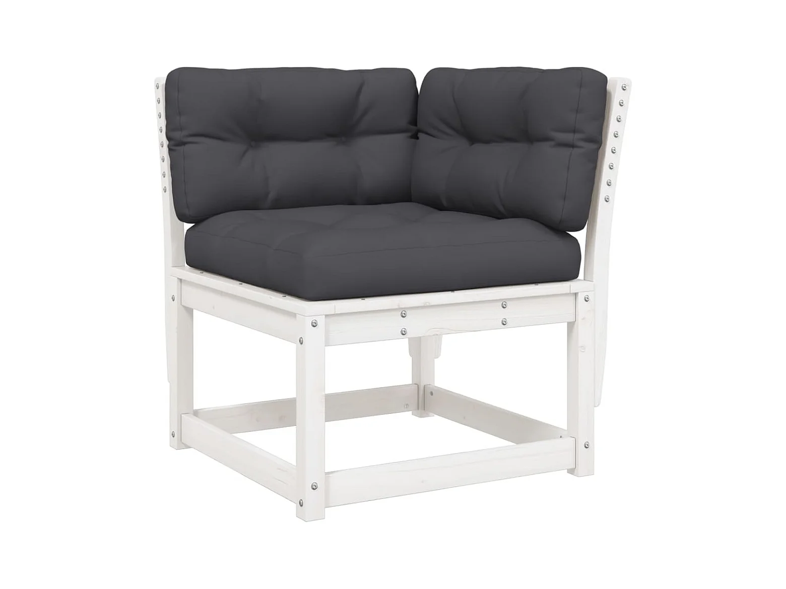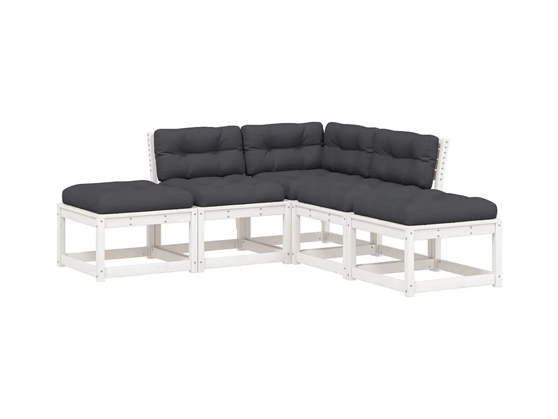 Salon de jardin 5 pcs avec coussins blanc bois massif de pin