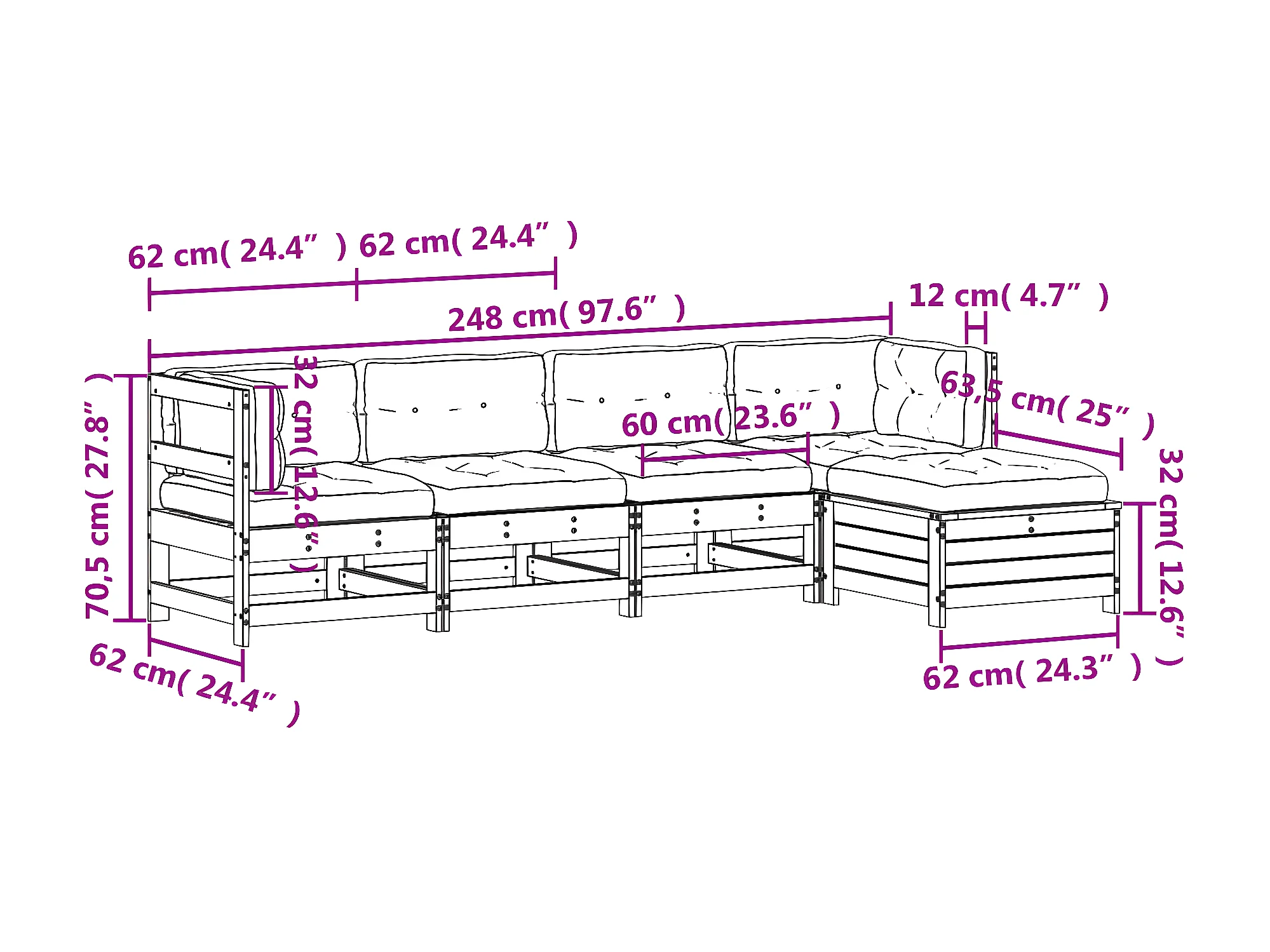 Salon de jardin 5 pcs avec coussins Bois de pin massif
