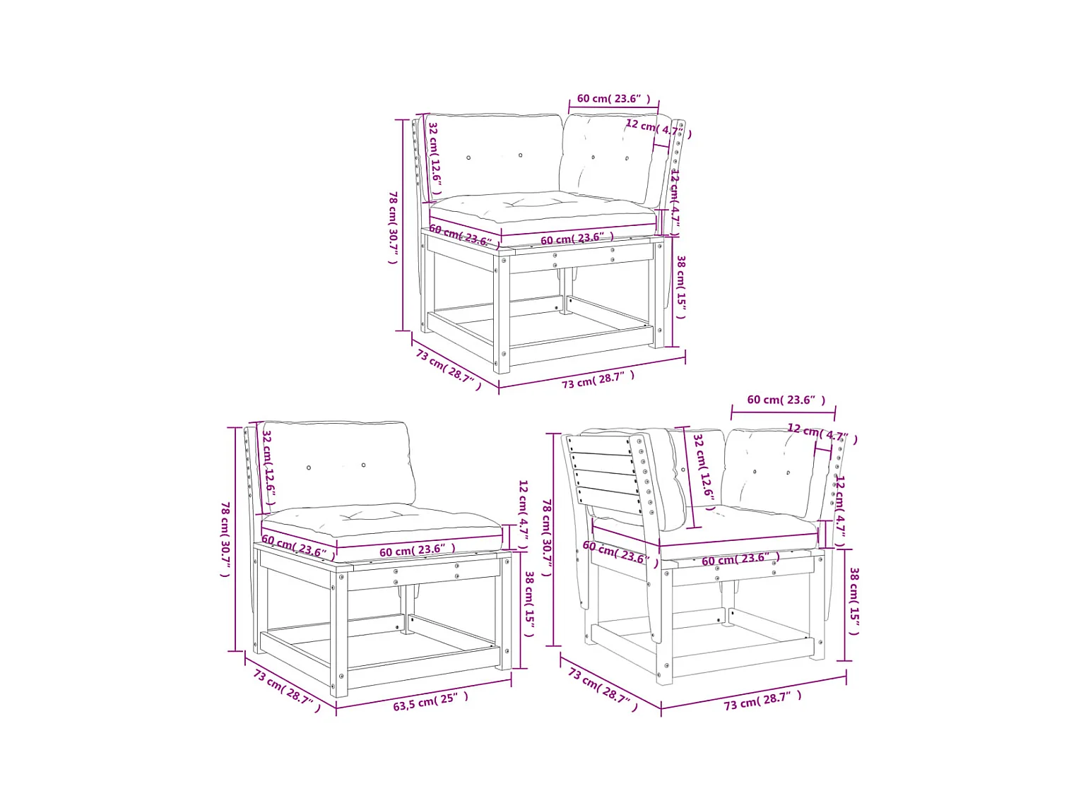 Salon de jardin 6 pcs avec coussins bois de pin massif