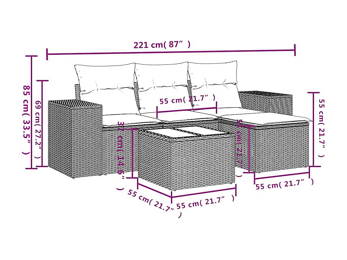 Salon complet de jardin Canapé 2 places et 2 fauteuils