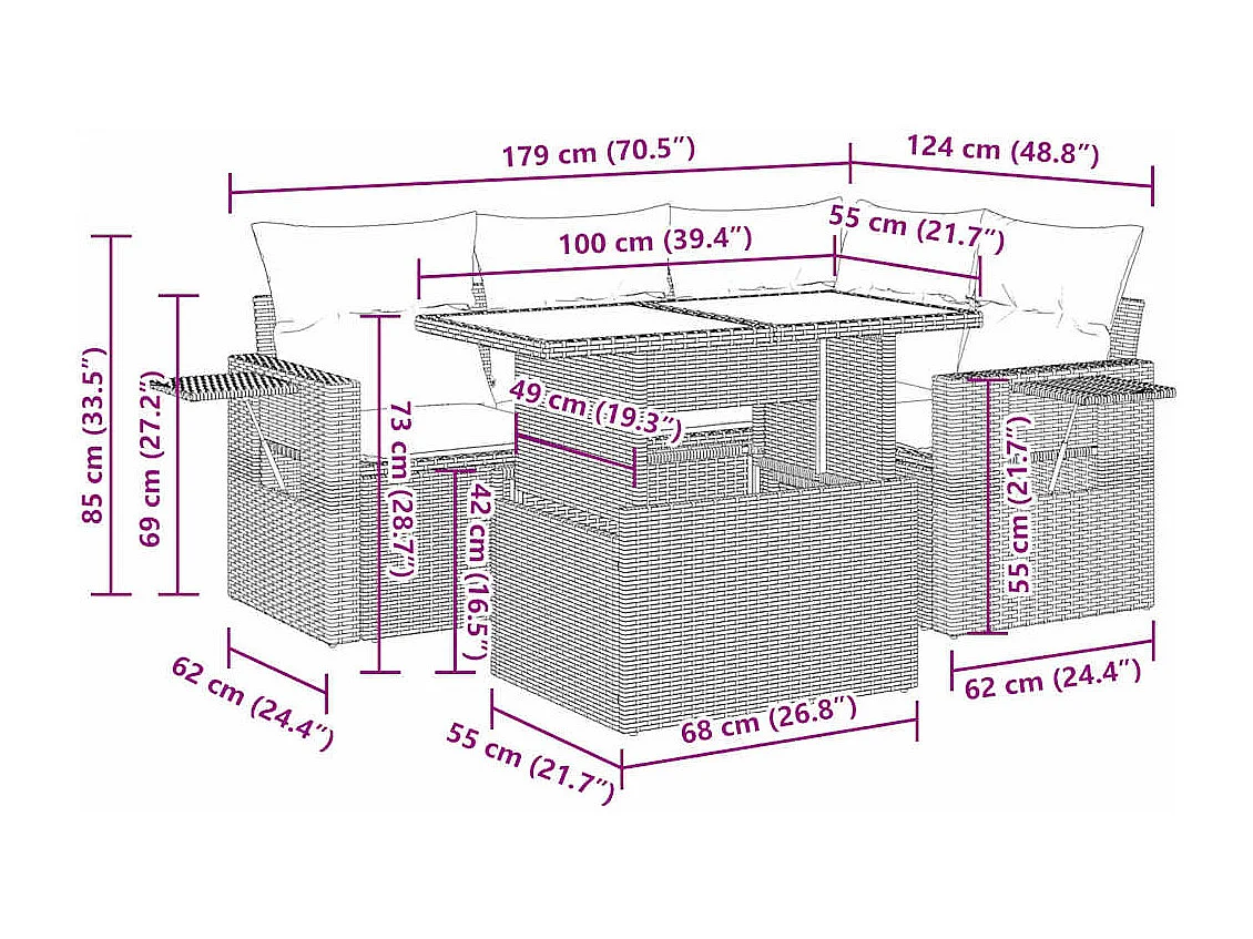 Salon complet de jardin Canapé 2 places et 2 fauteuils