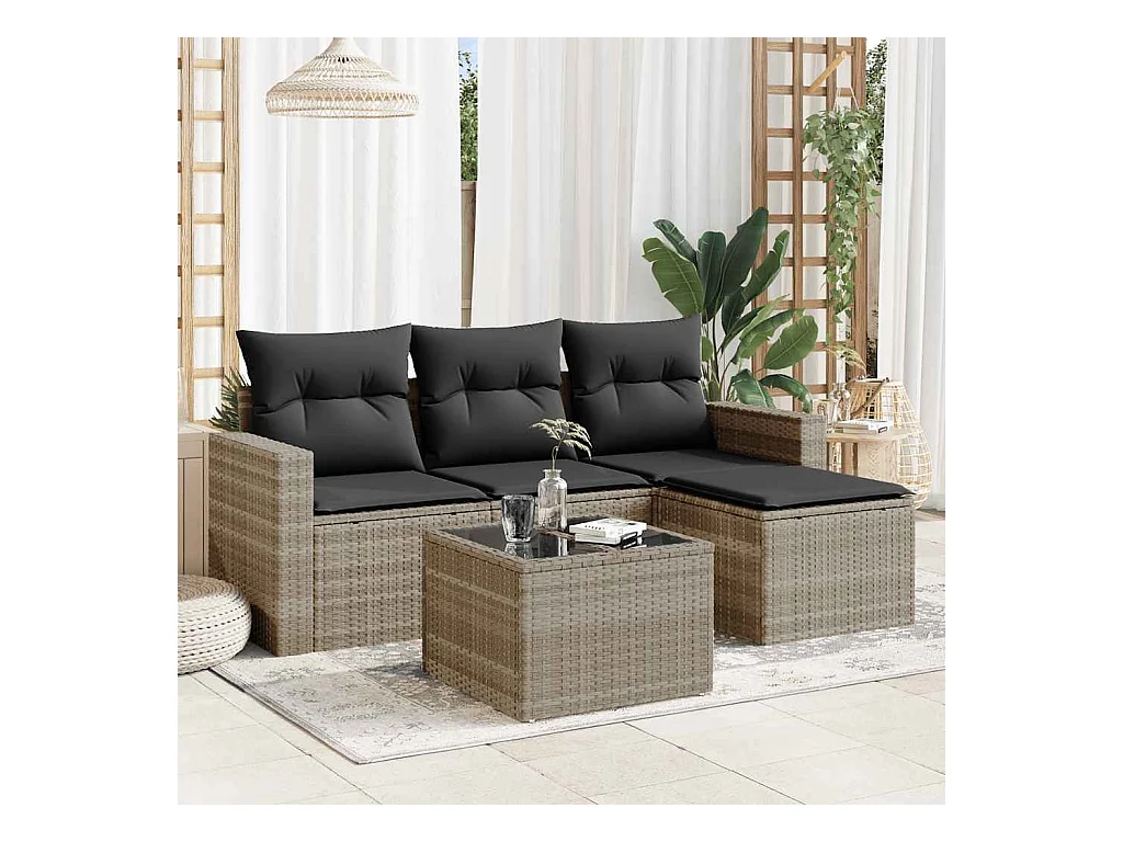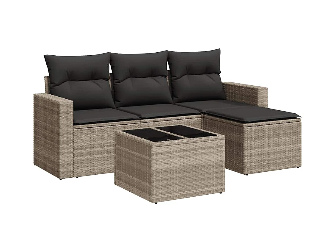 Salon de jardin 5 pcs avec coussins gris clair résine tressée