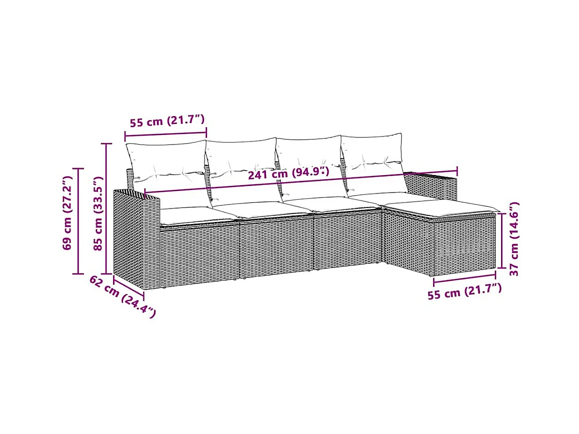 Salon de jardin 5 pcs avec coussins gris clair résine tressée