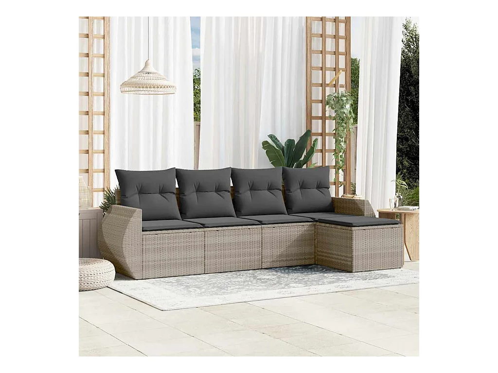 Salon de jardin 5 pcs avec coussins gris clair résine tressée